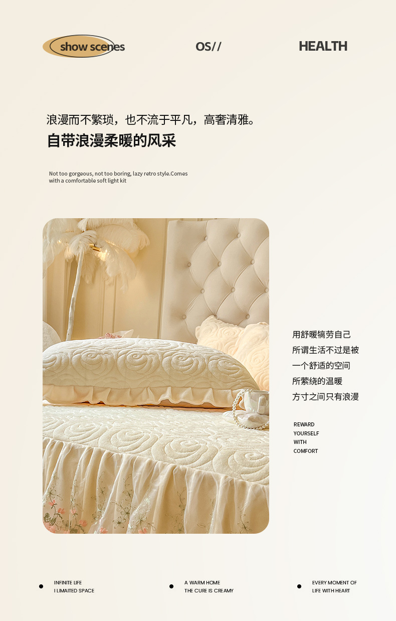 恋尚 2025新款牛奶绒夹棉床笠裙-曼苏 曼苏-奶黄