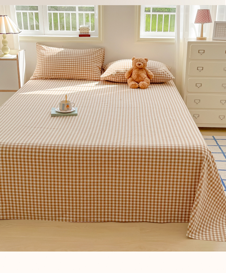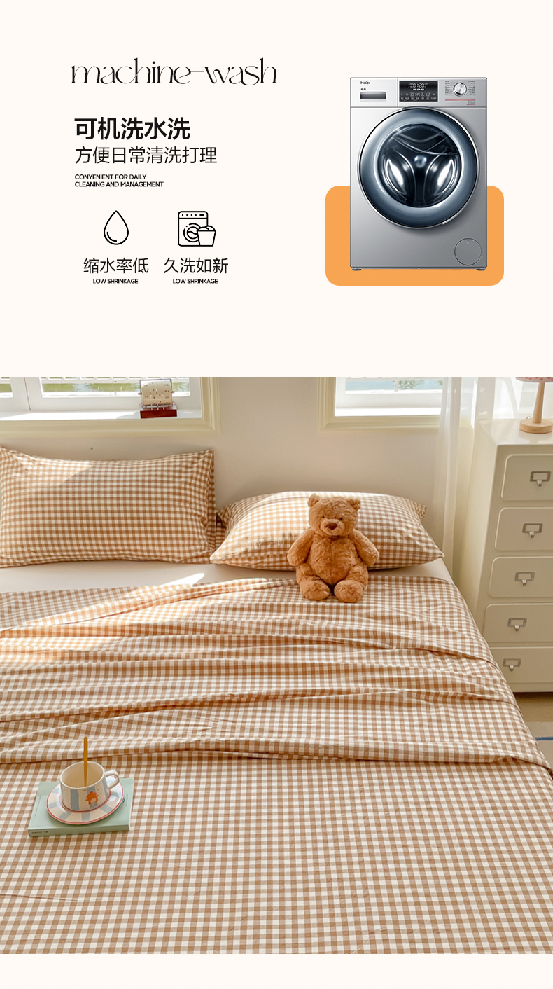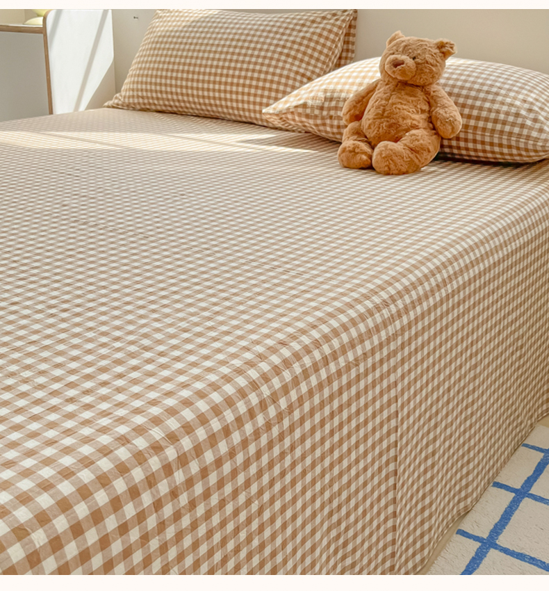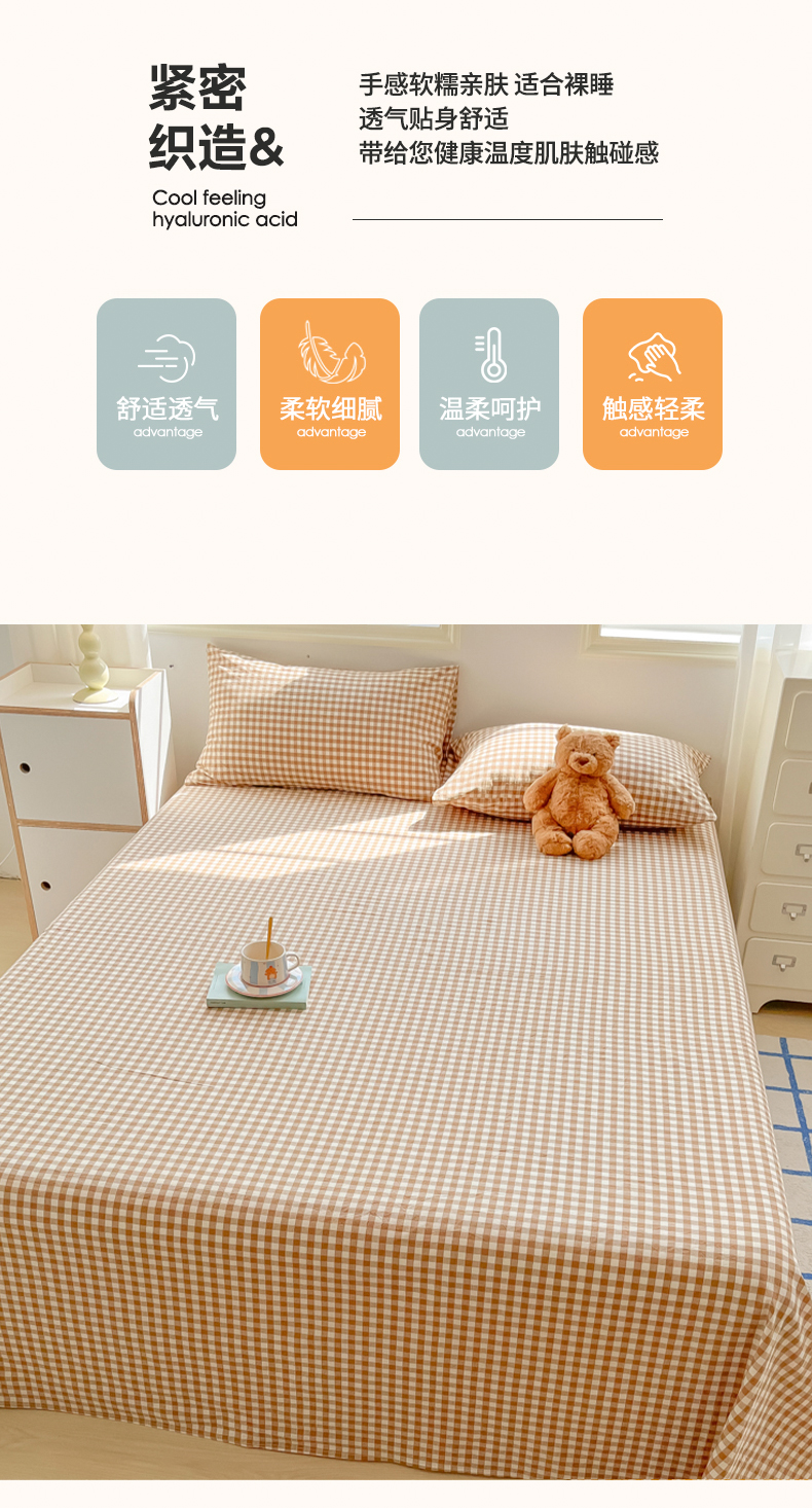 商品名称:韩巢家纺 2025新款格子纯色A类水洗棉床单单件 A类杏色格-床单