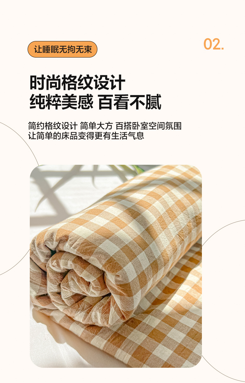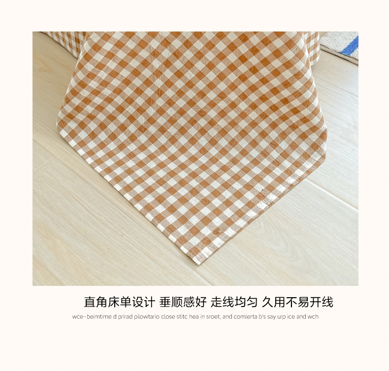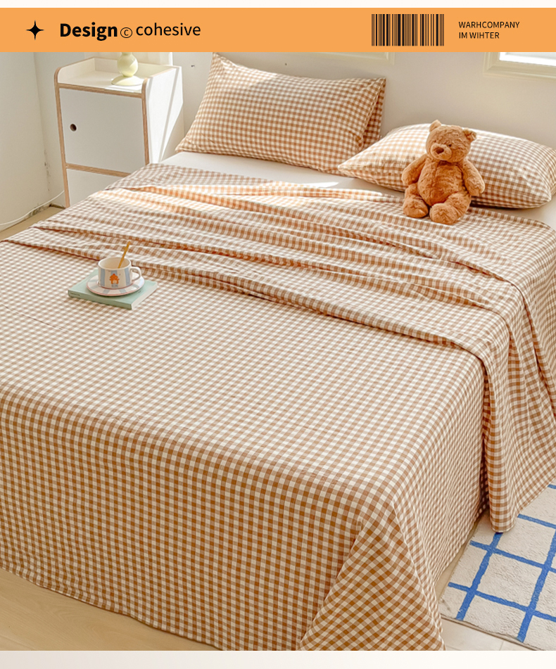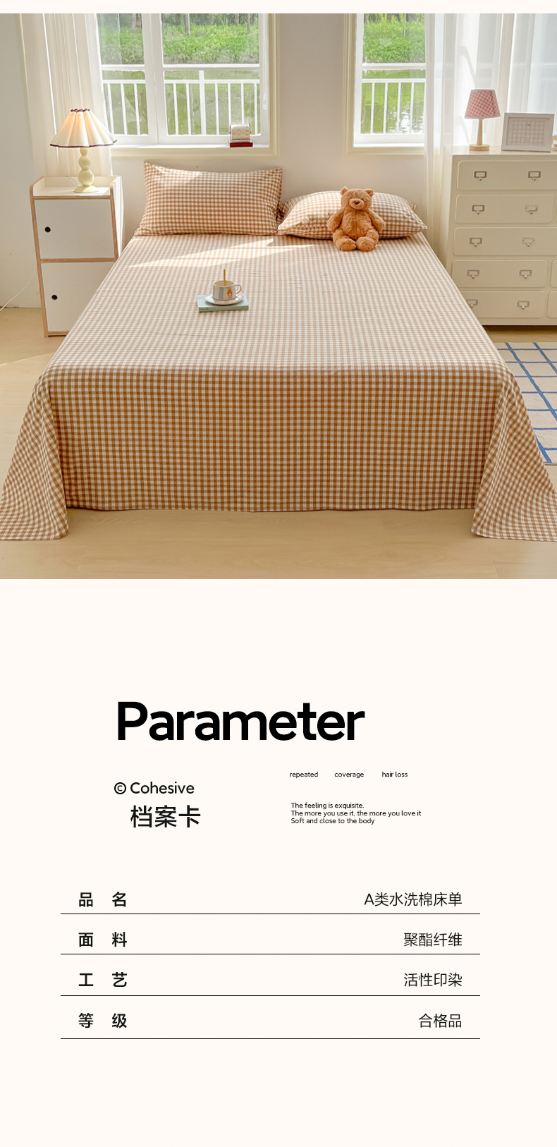 商品名称:韩巢家纺 2025新款格子纯色A类水洗棉床单单件 A类杏色格-床单