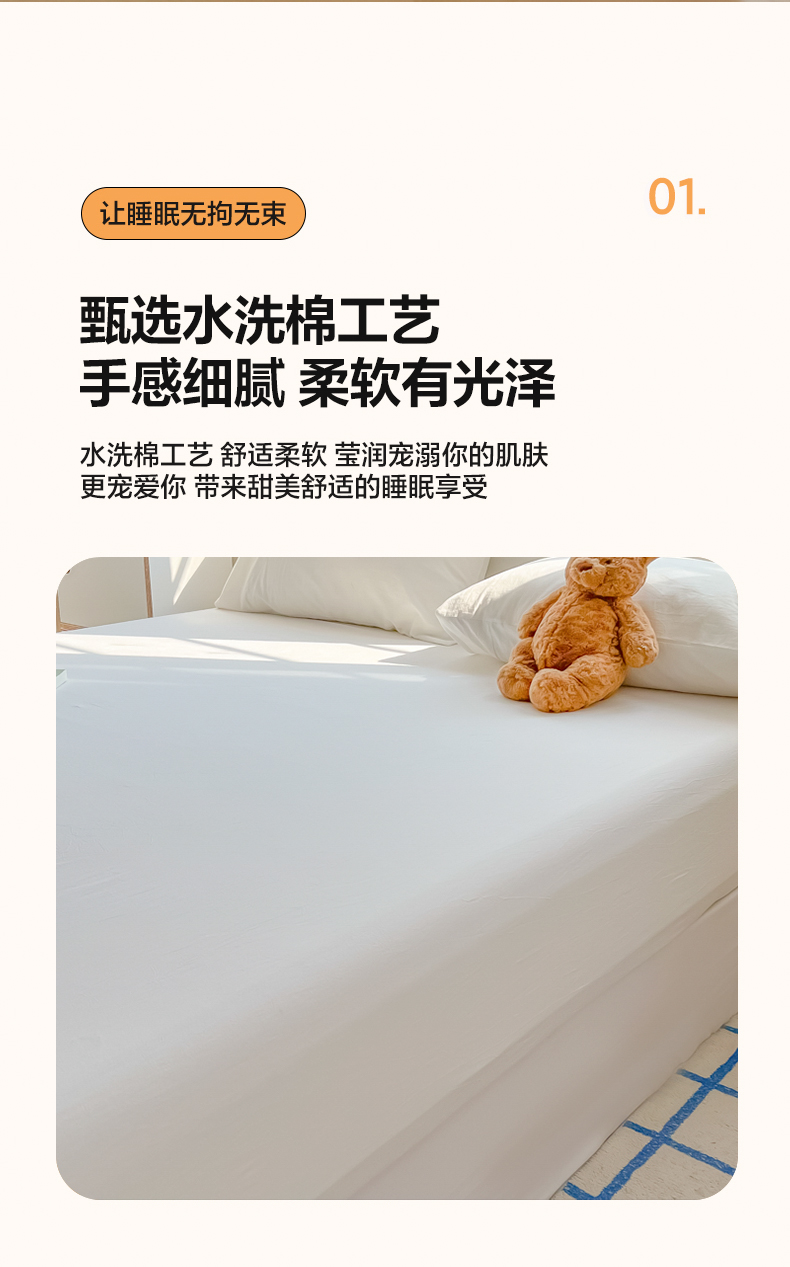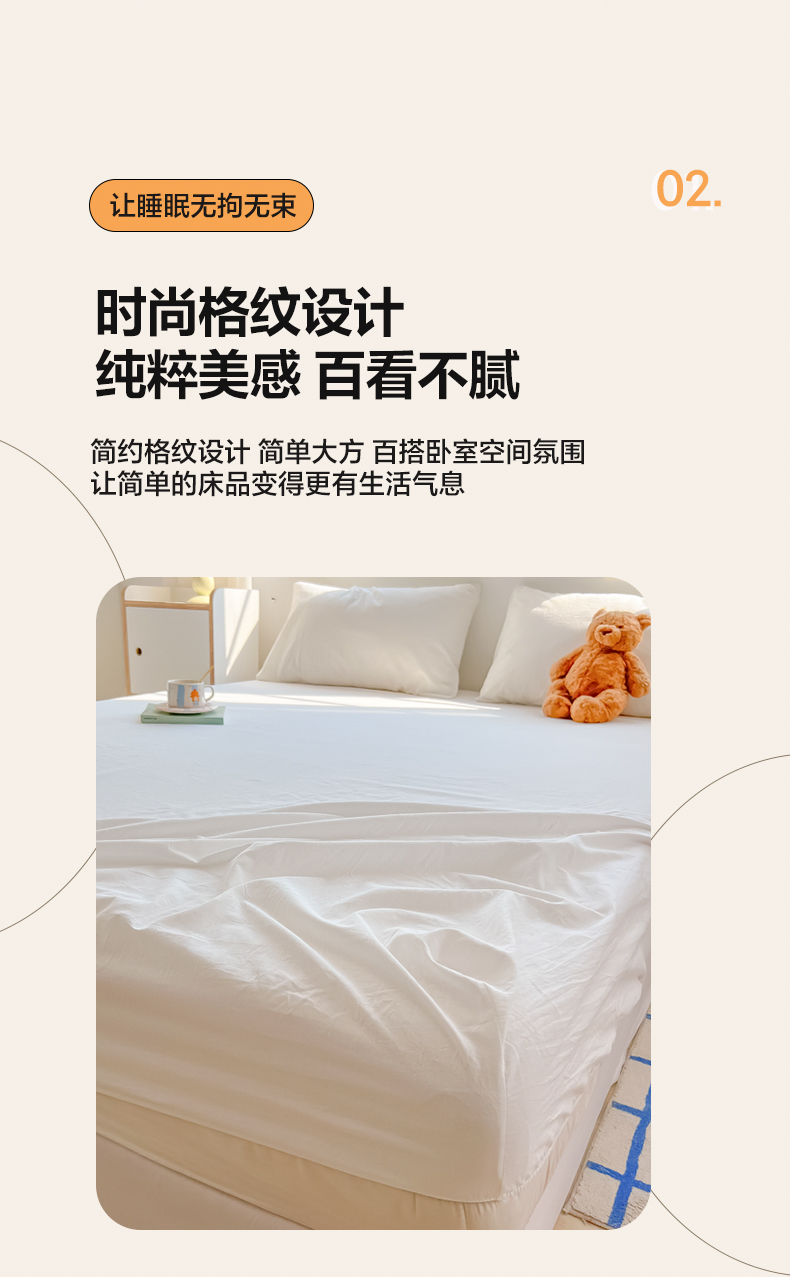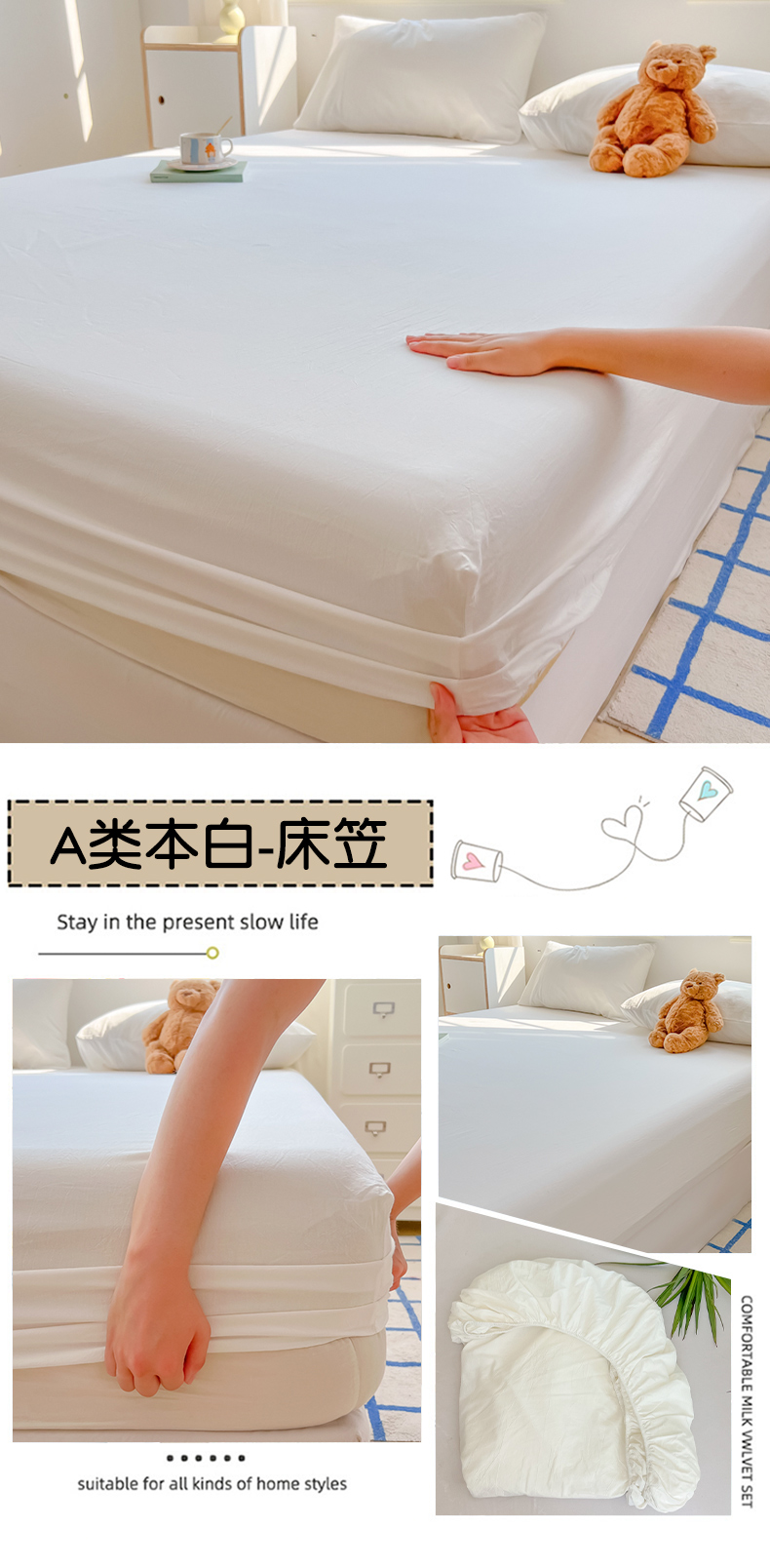 • 91家纺网 家纺一手货源 找家纺 韩巢家纺 2025新款A类纯色格子水洗棉床笠单件床罩床套 A类本白-床笠