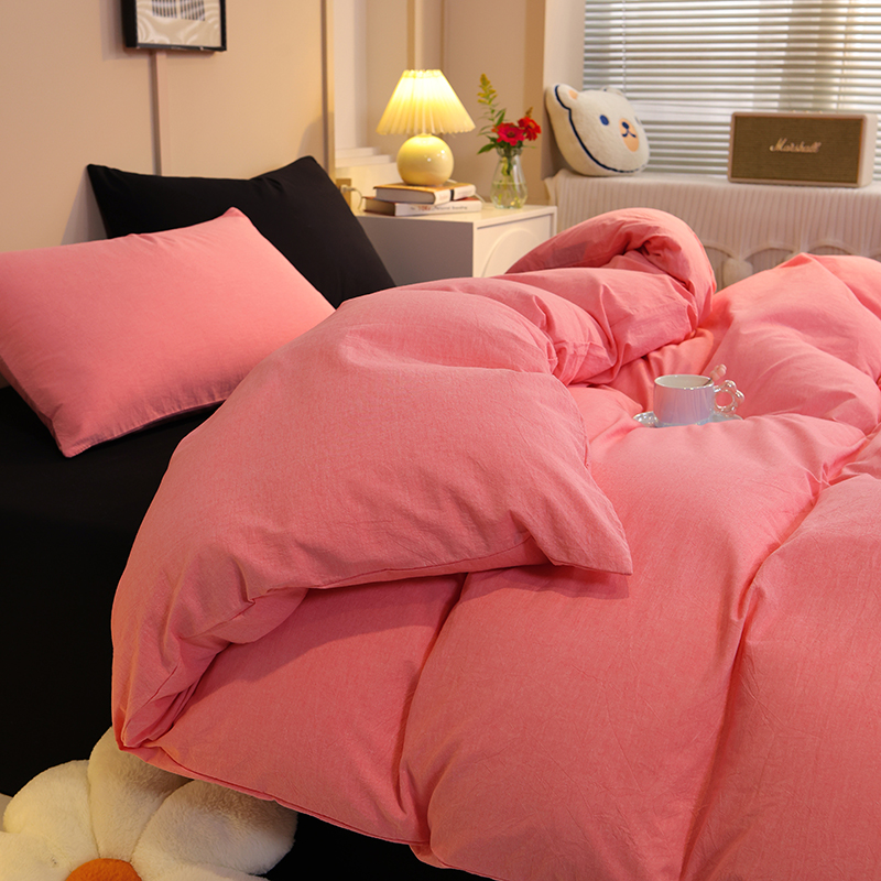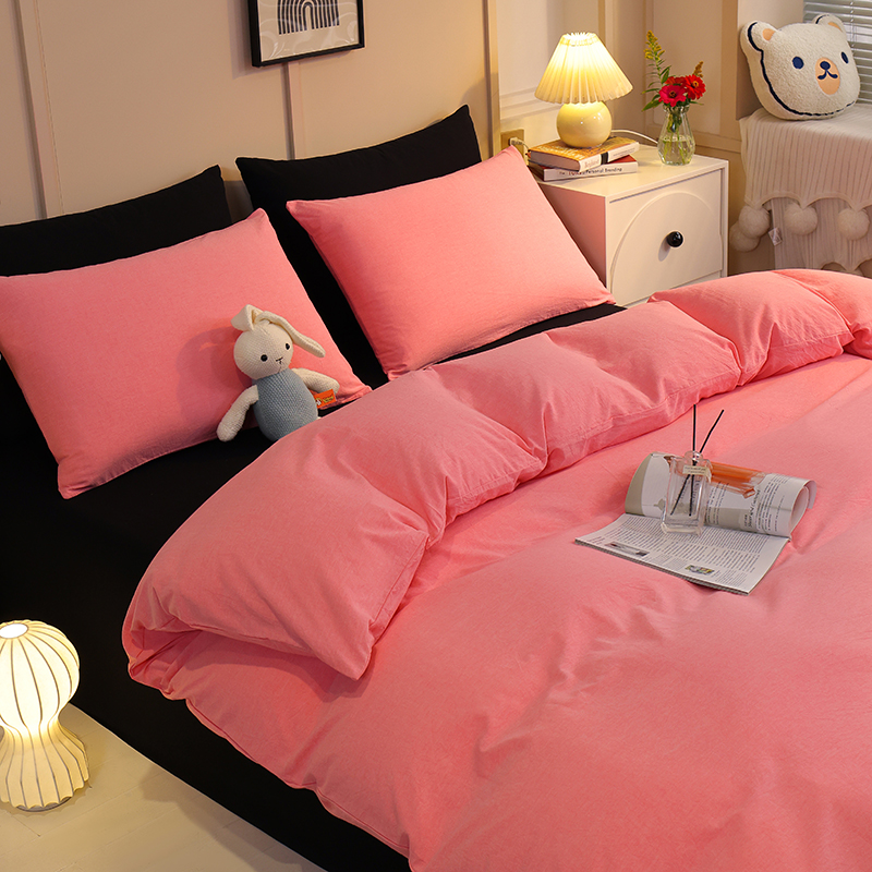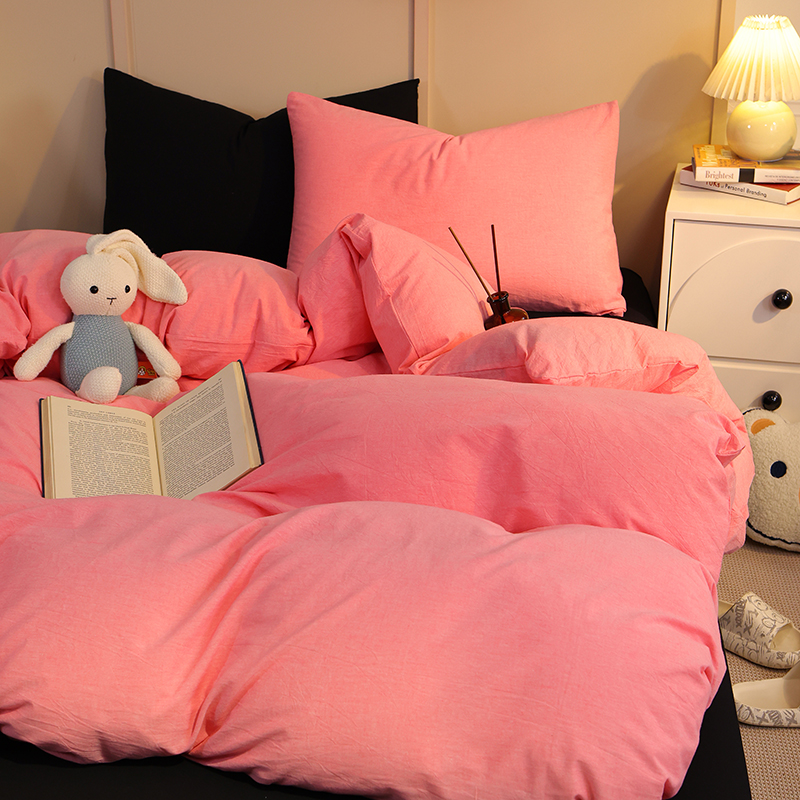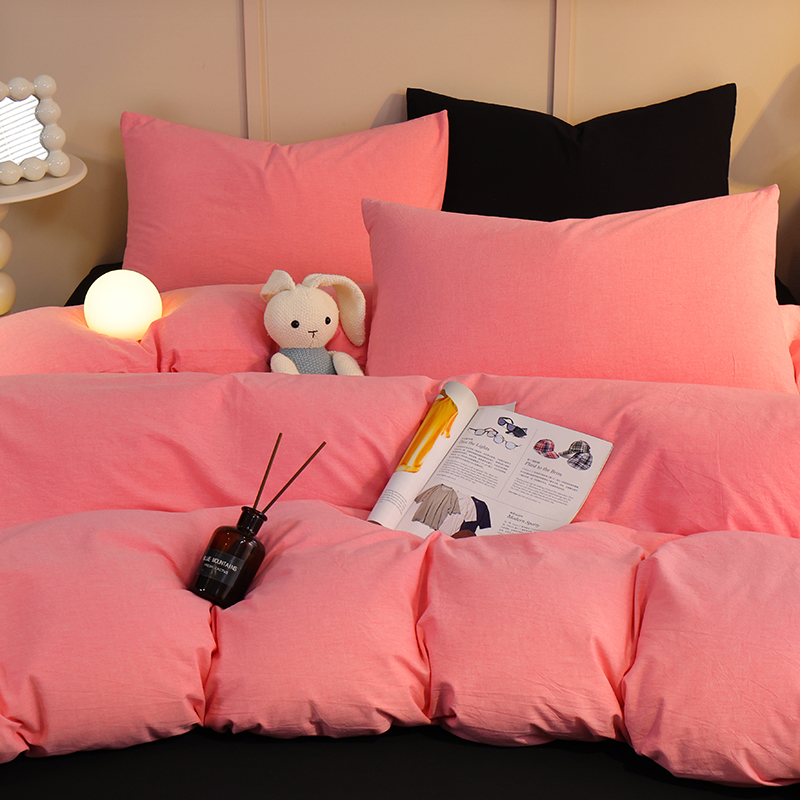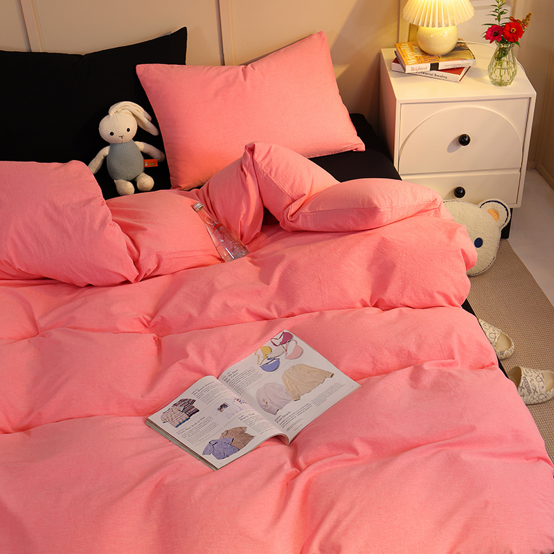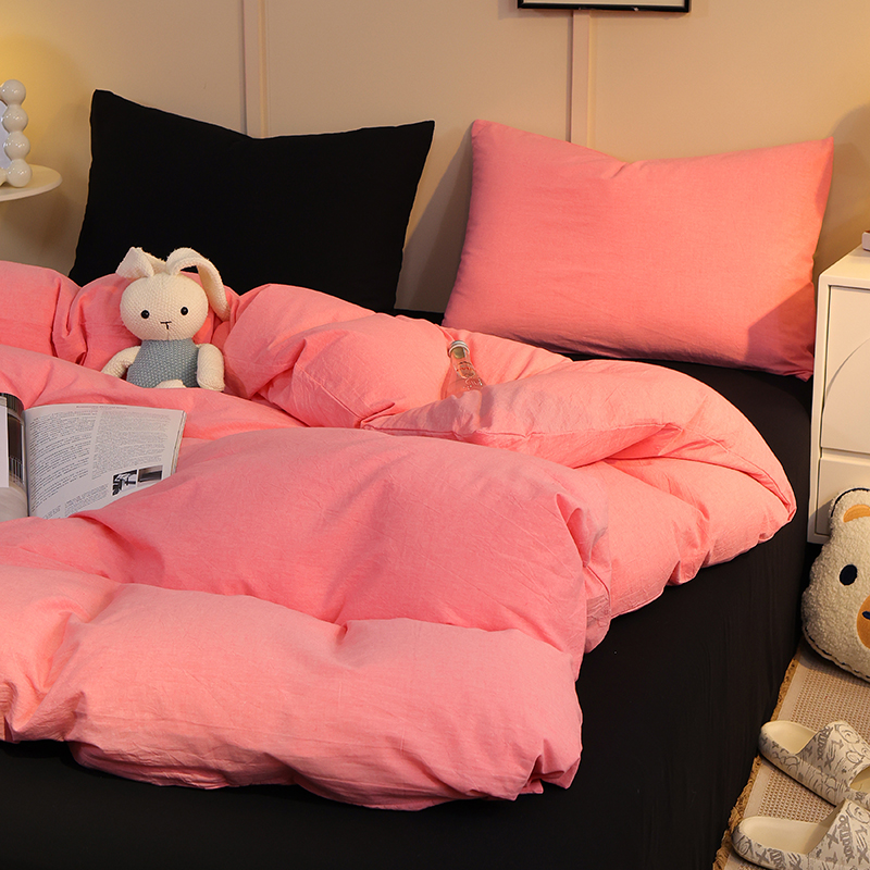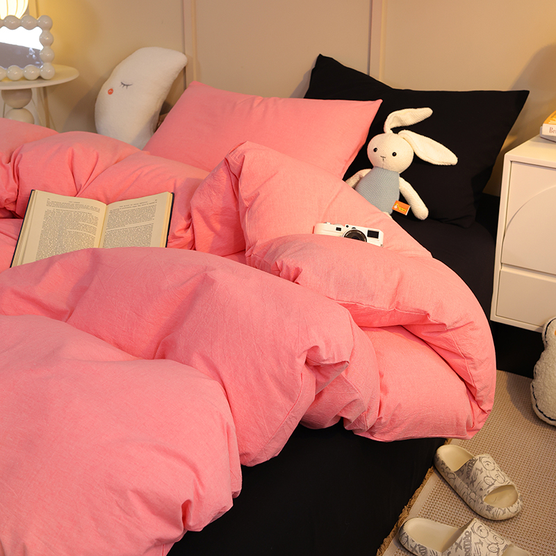 商品名称:悦织湾家纺 2025新款亲肤水洗棉纯色双拼四件套轻奢时尚 双拼玫粉+酷黑