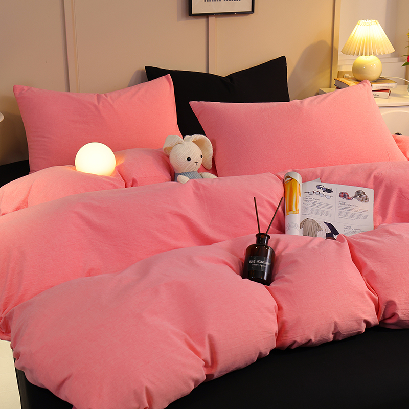 悦织湾家纺 2025新款亲肤水洗棉纯色双拼四件套轻奢时尚 双拼玫粉+酷黑