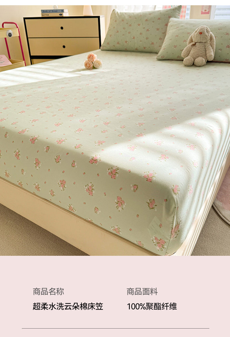 • 91家纺网 家纺一手货源 找家纺 多品家纺 2025新款超柔水洗云朵棉单品床笠 半夏