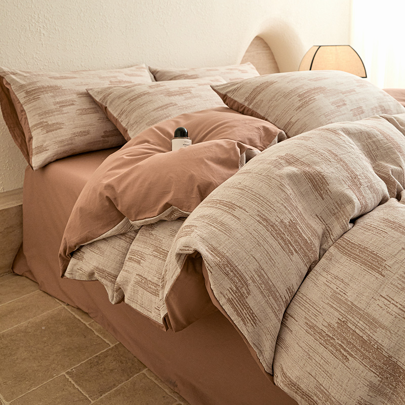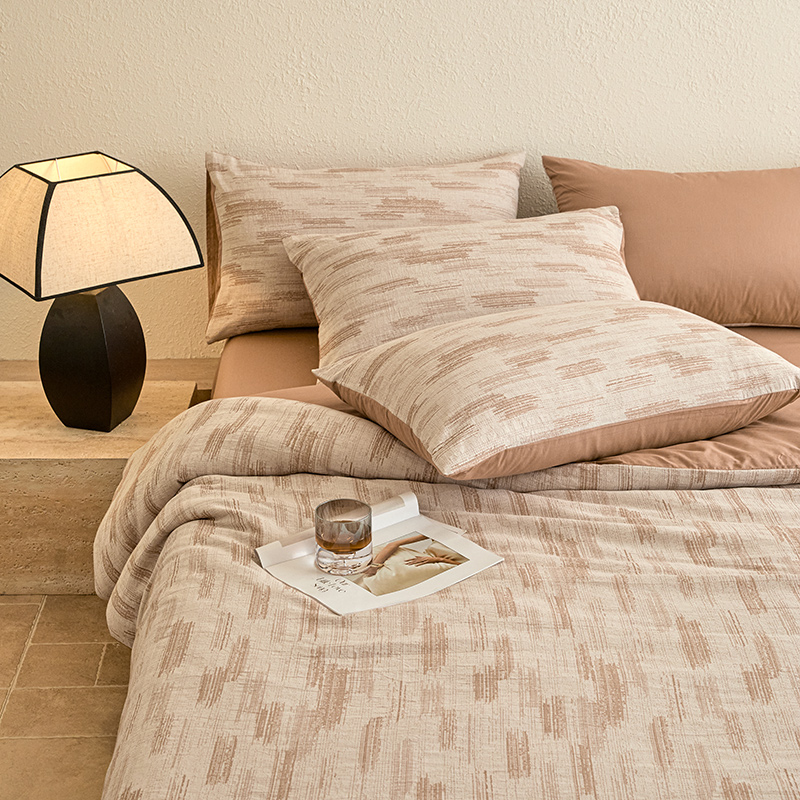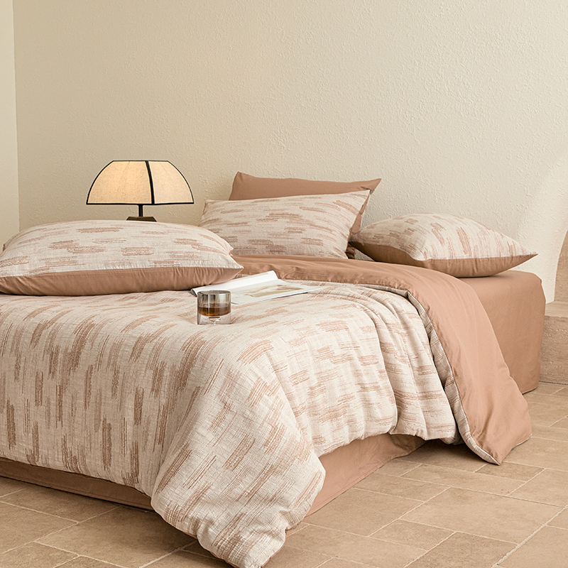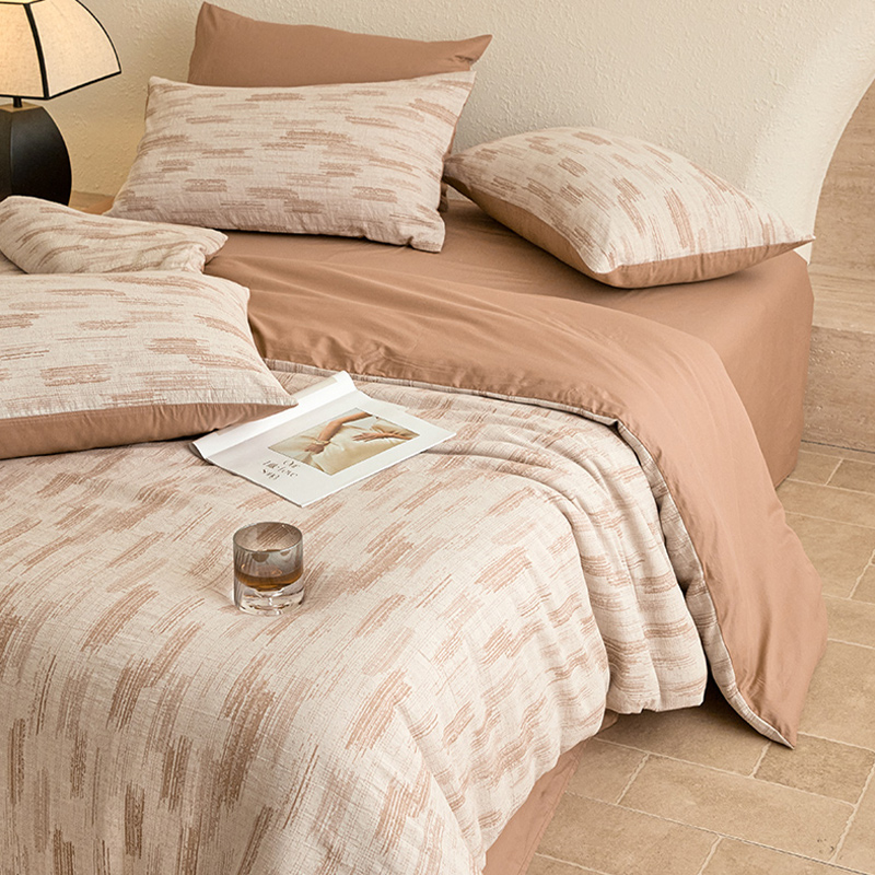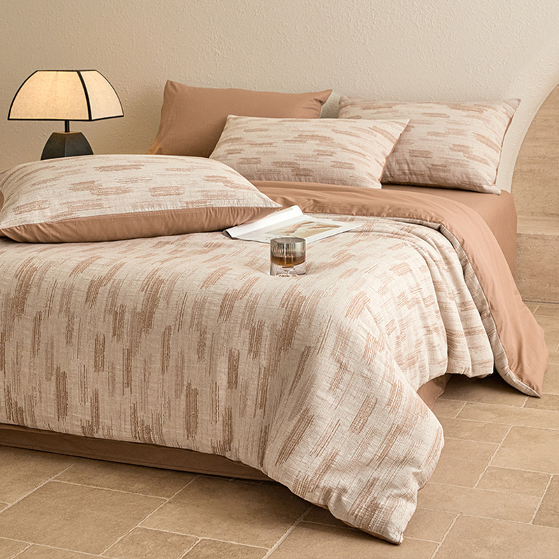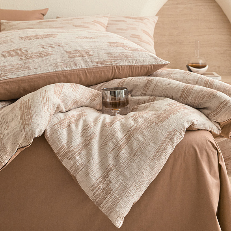 当前位置: 91家纺网 > 商品网购 > 床品套件 > 四件套 > 全棉普通四件套 > 2025新款全棉三层纱色织大提花四件套系列 追夏-咖