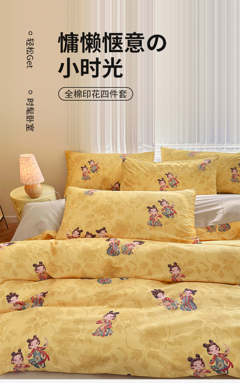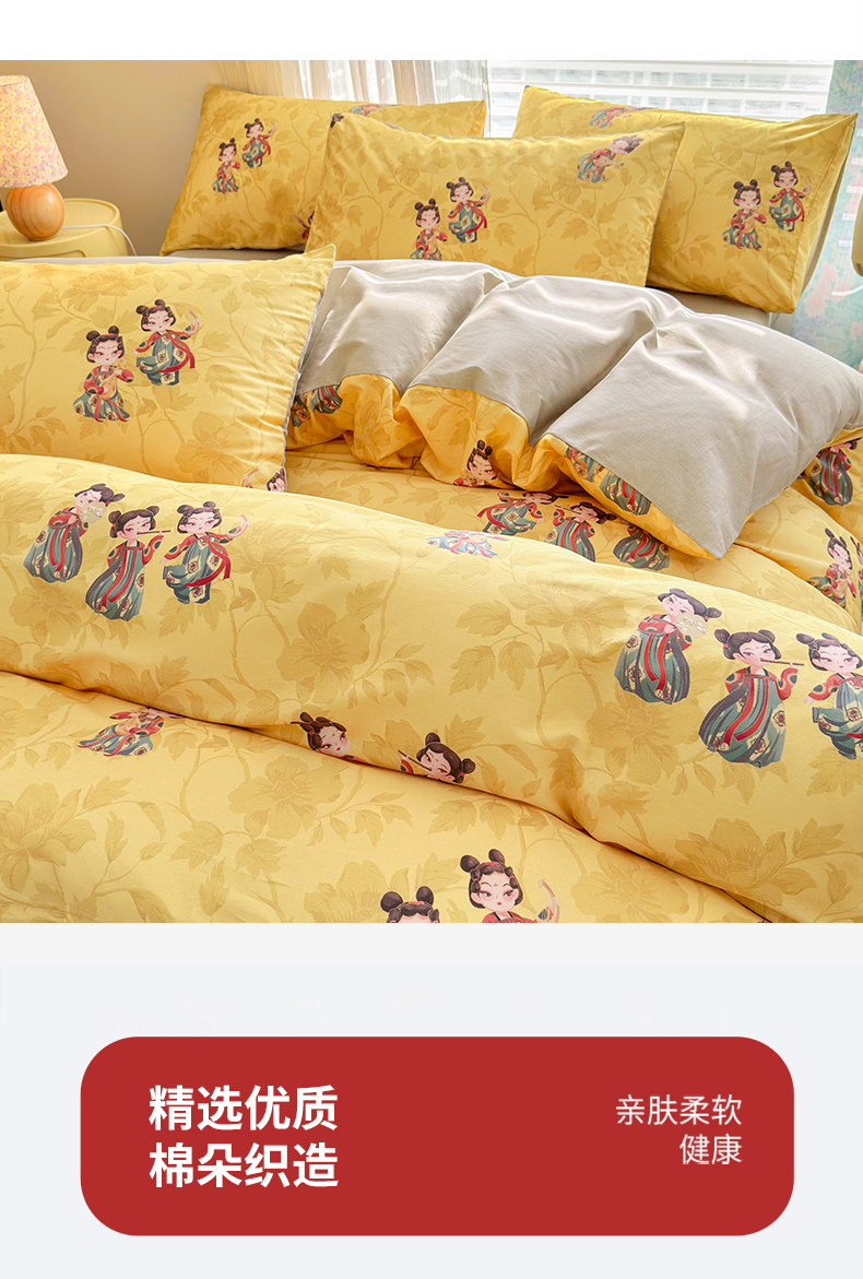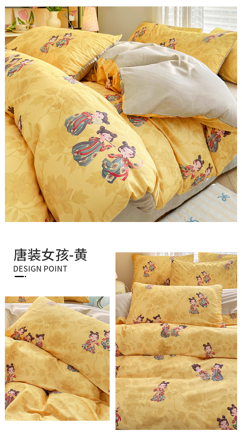 商品名称:名兮家居 2025新款12868全棉纯棉四件套 唐装女孩-黄