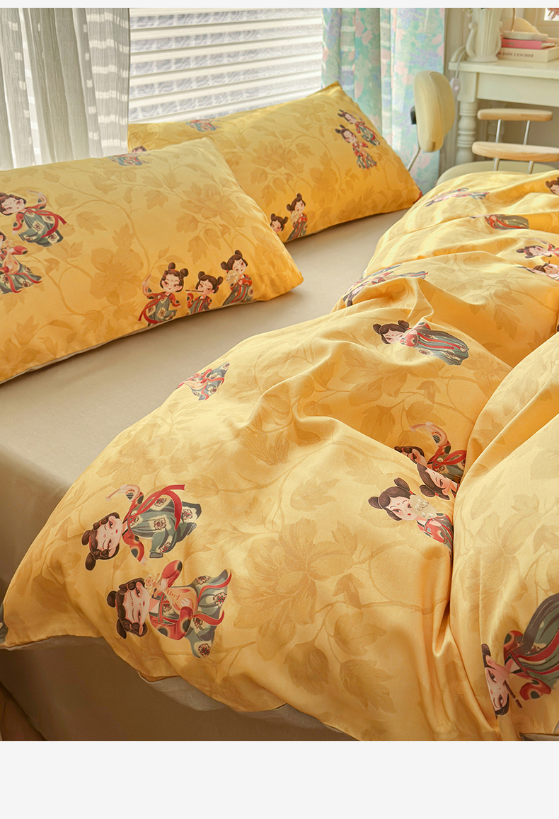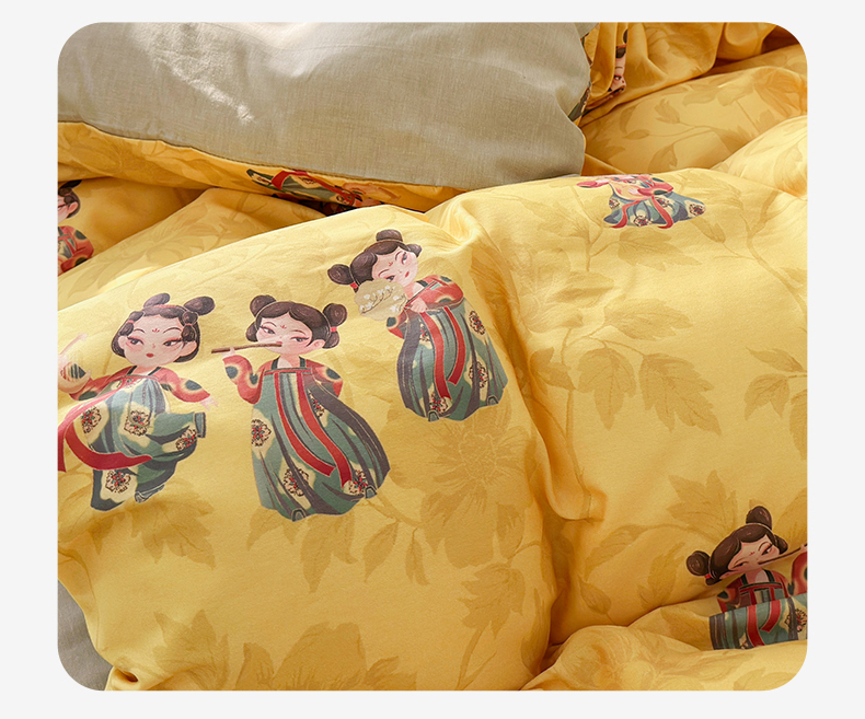 名兮家居 2025新款12868全棉纯棉四件套 唐装女孩-黄