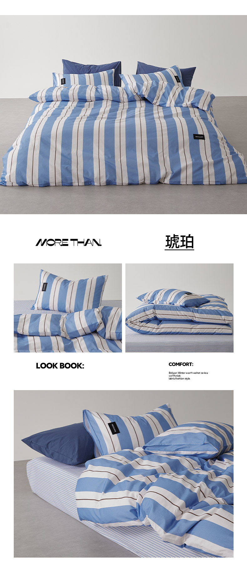 商品名称:怡家居 2025新款极简黑标系列蓝色条纹四件套 琥珀