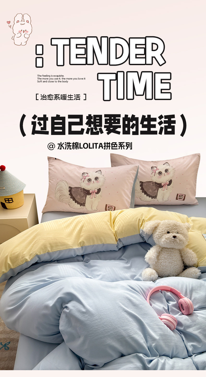 当前位置: 91家纺网 > 商品网购 > 床品套件 > 四件套 > 水洗棉四件套 > (总)贝扬思家纺 2025新款水洗棉拼色Lolita系列四件套-系列二