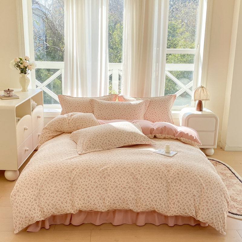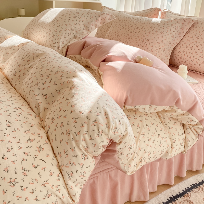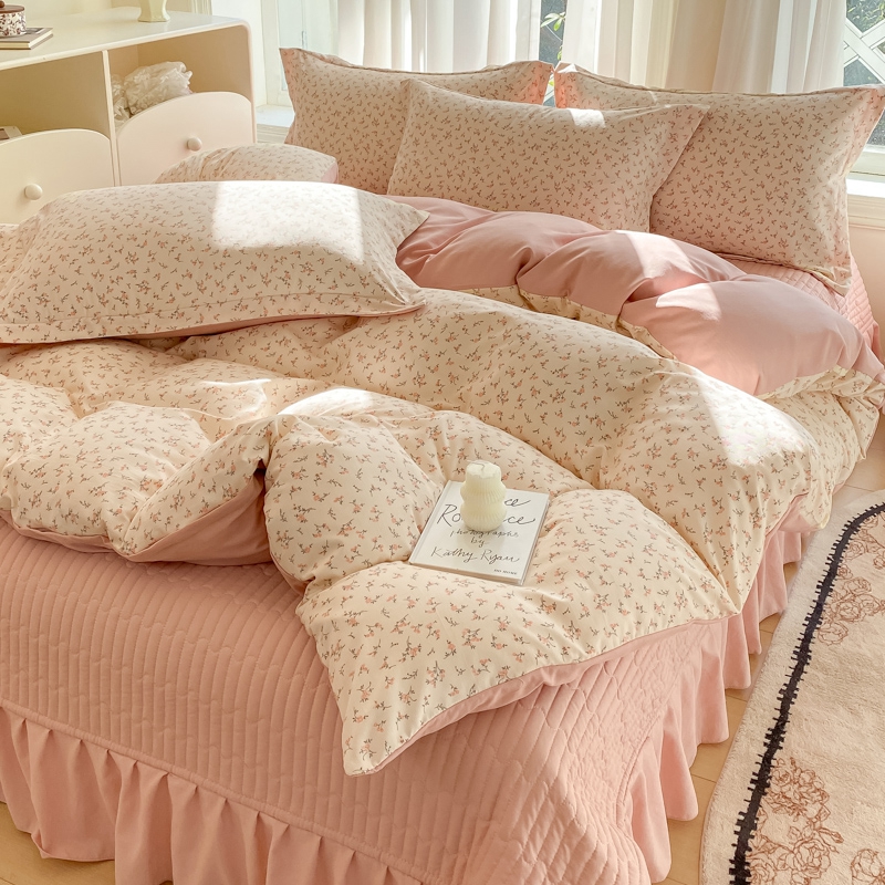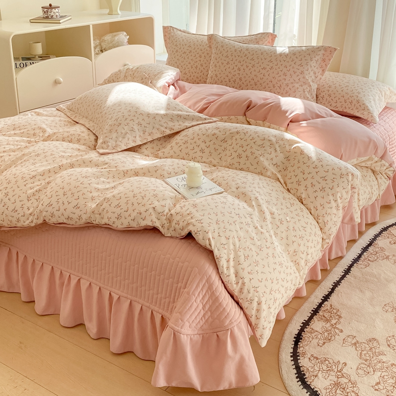 尚美 2025新款小碎花针织棉床盖四件套 奶茶花