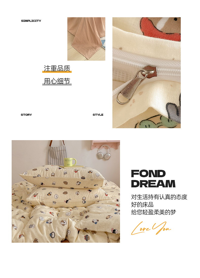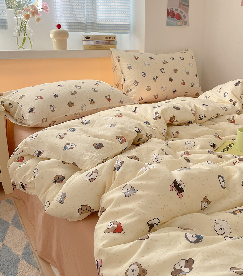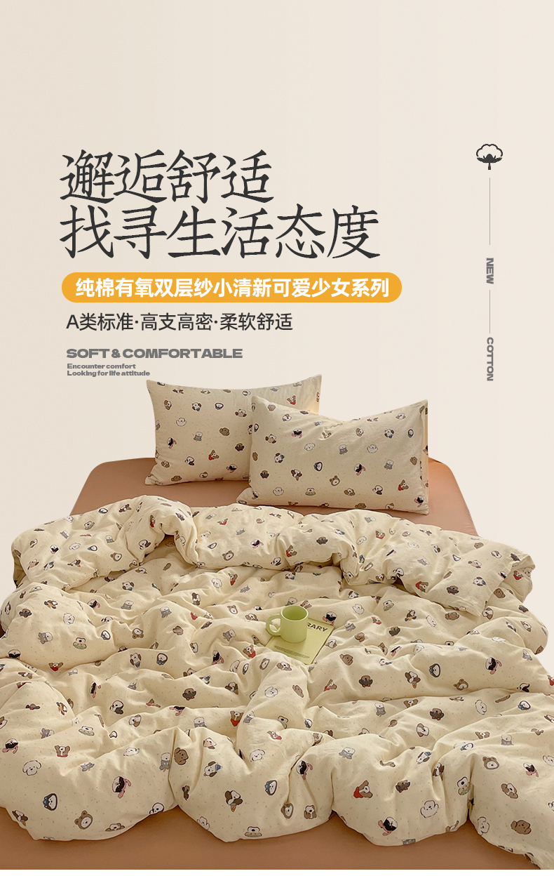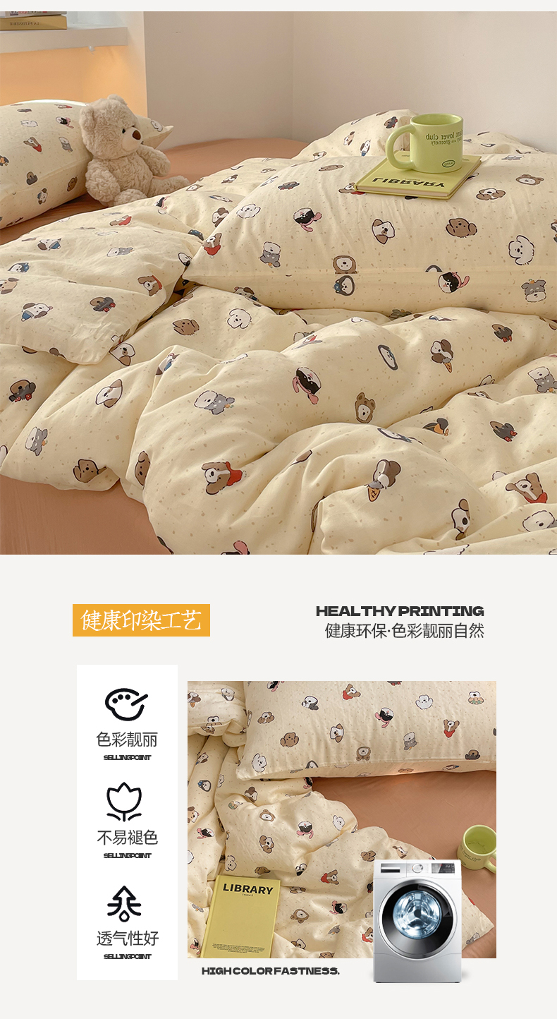 当前位置: 91家纺网 > 商品网购 > 床品套件 > 四件套 > 全棉普通四件套 > 桃子家居2025新款A类纯棉有氧双层纱小清新可爱少女系列四件套 棉双层纱-奶咖黄油狗