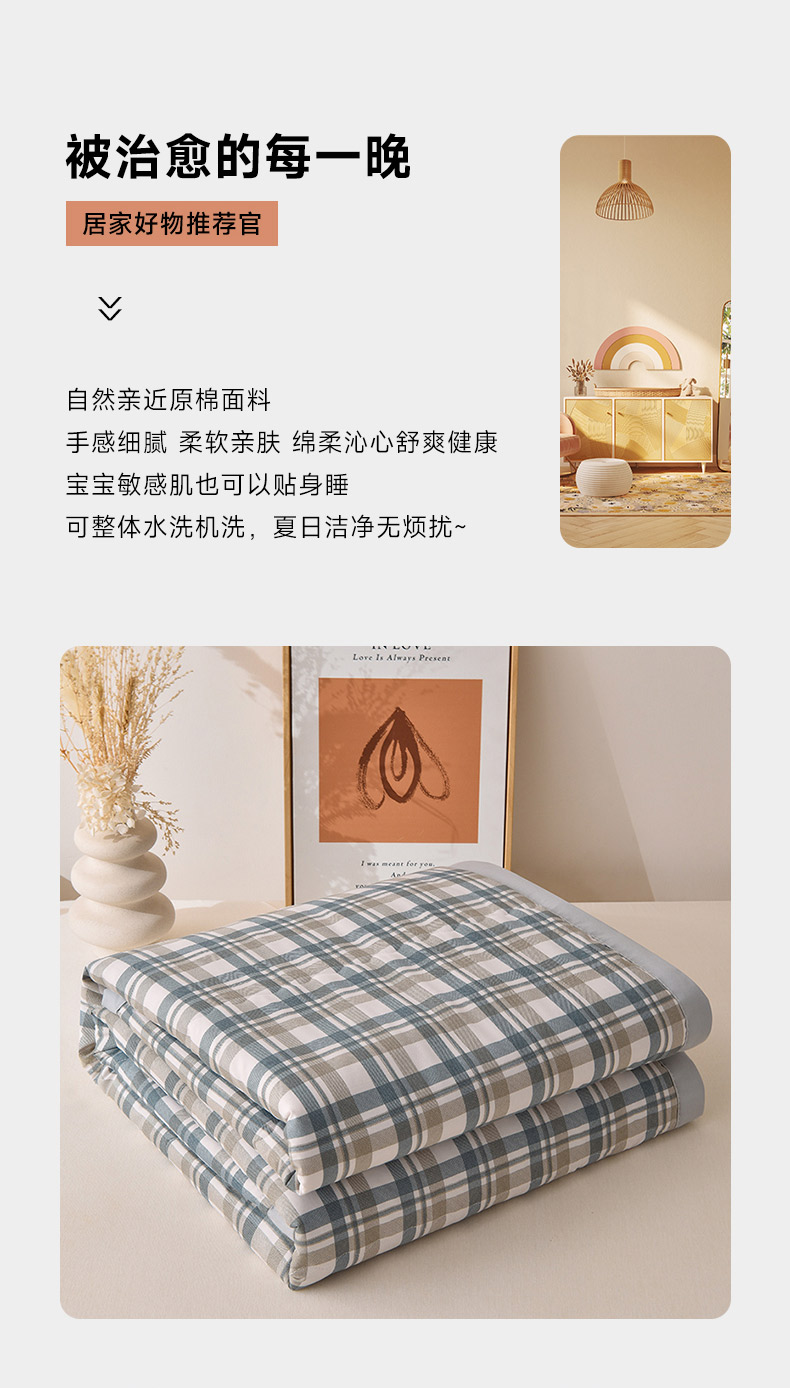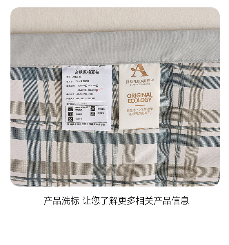 商品名称:艾兜坊 2025新款亲肤原棉夏被 2蓝卡其格