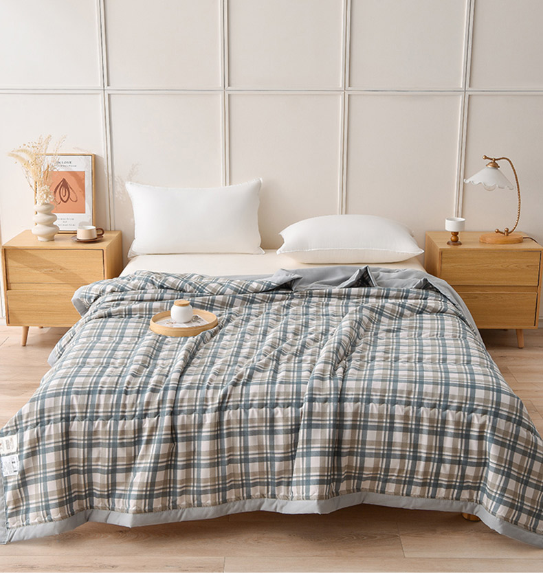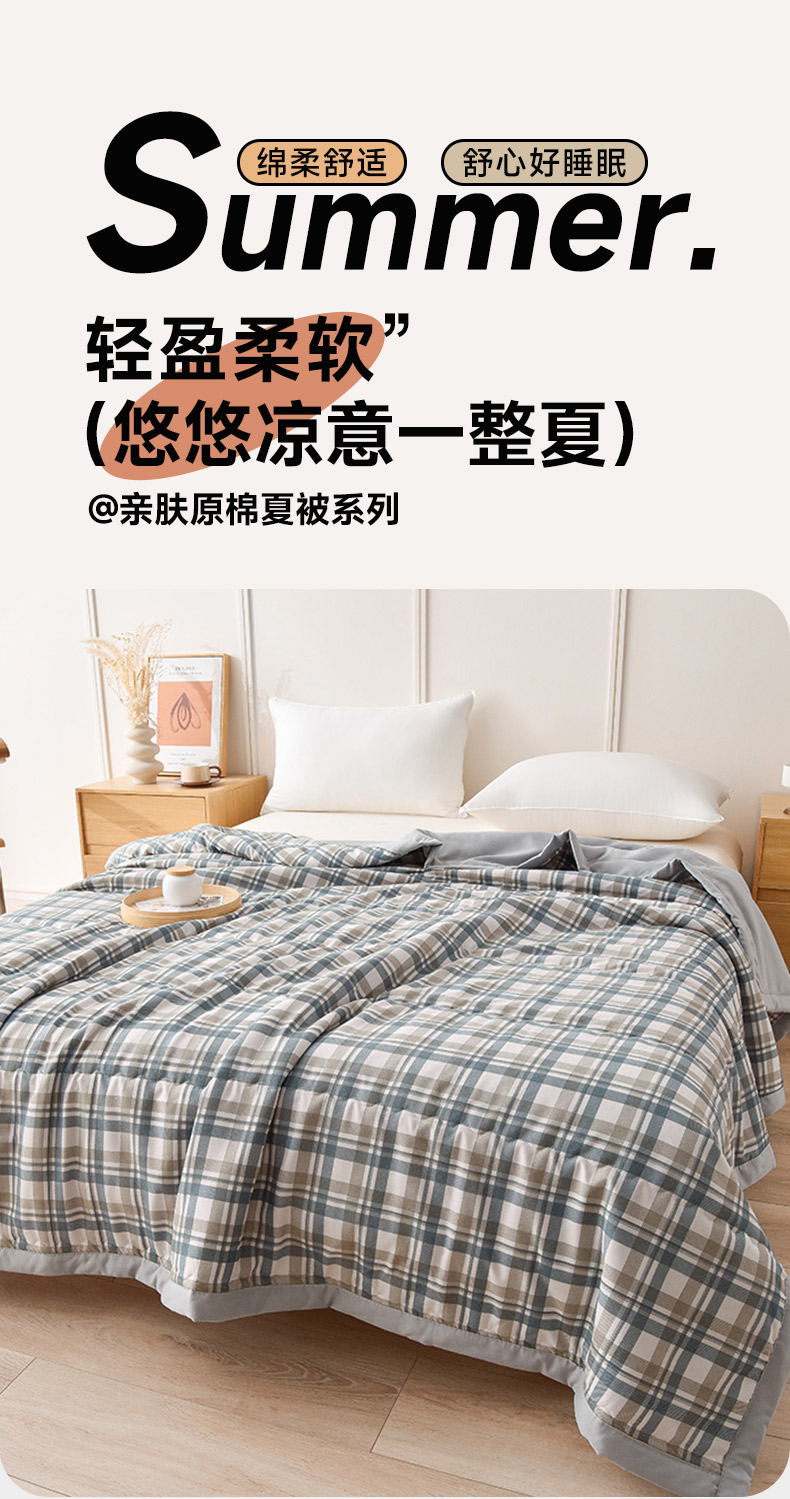 艾兜坊 2025新款亲肤原棉夏被 2蓝卡其格