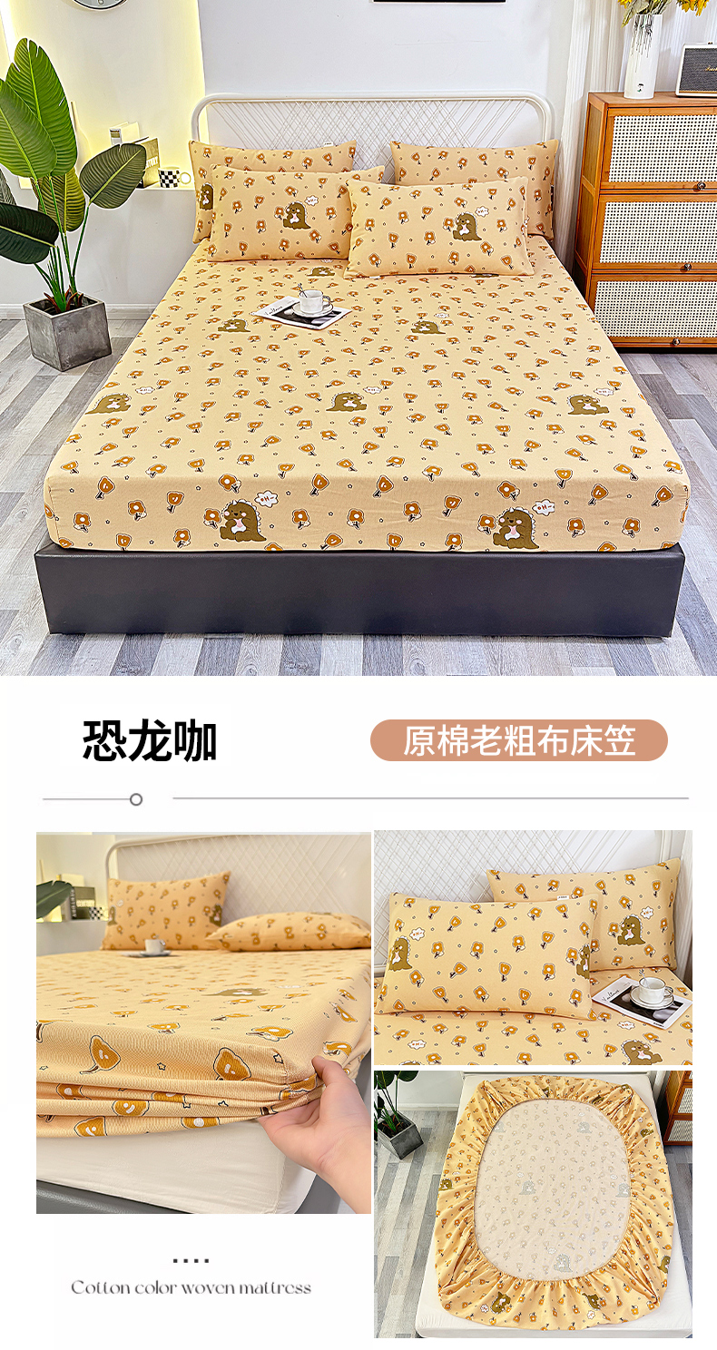 • 91家纺网 家纺一手货源 找家纺 伊而梦蚊帐 2025新款原棉老粗布床笠 恐龙咖