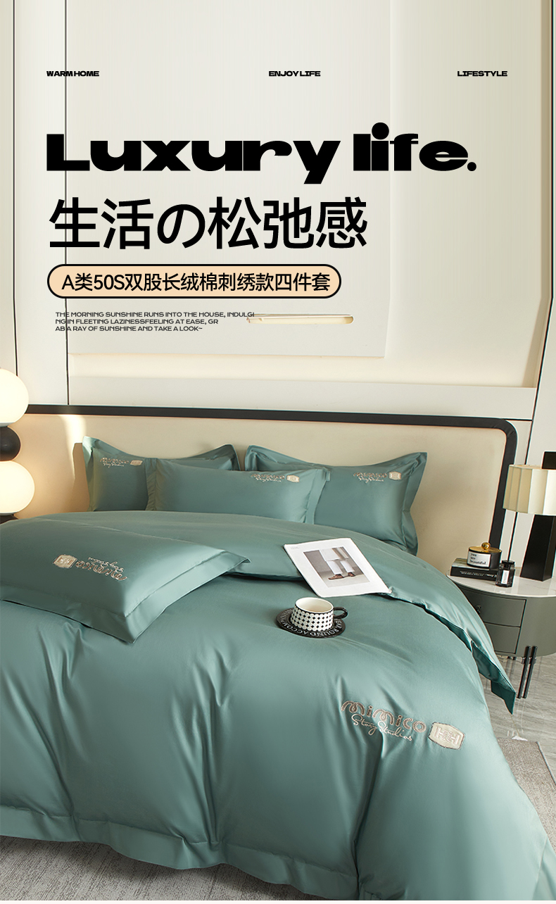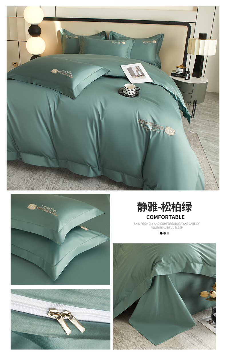 (总)曼秀琳家纺 2025新款50s双股长绒棉刺绣款四件套(静雅系列),静雅-海岸绿,静雅-岚紫,静雅-舒芙蕾,静雅-松柏绿,静雅-星空蓝,静雅-英伦灰