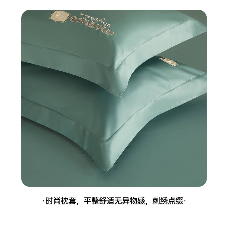 曼秀琳家纺 2025新款50s双股长绒棉刺绣款四件套(静雅系列) 静雅-松柏绿