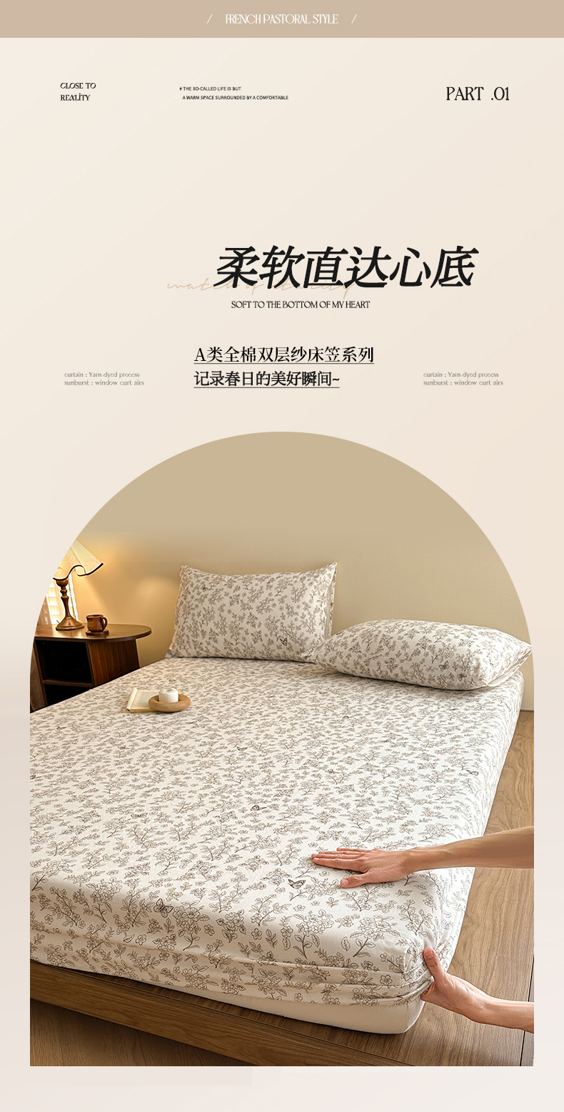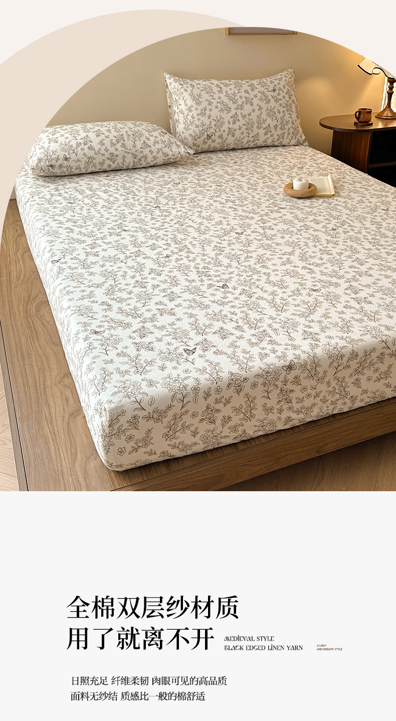 寻米 2025新款A类全棉双层纱印花单床笠 莫奈庄园