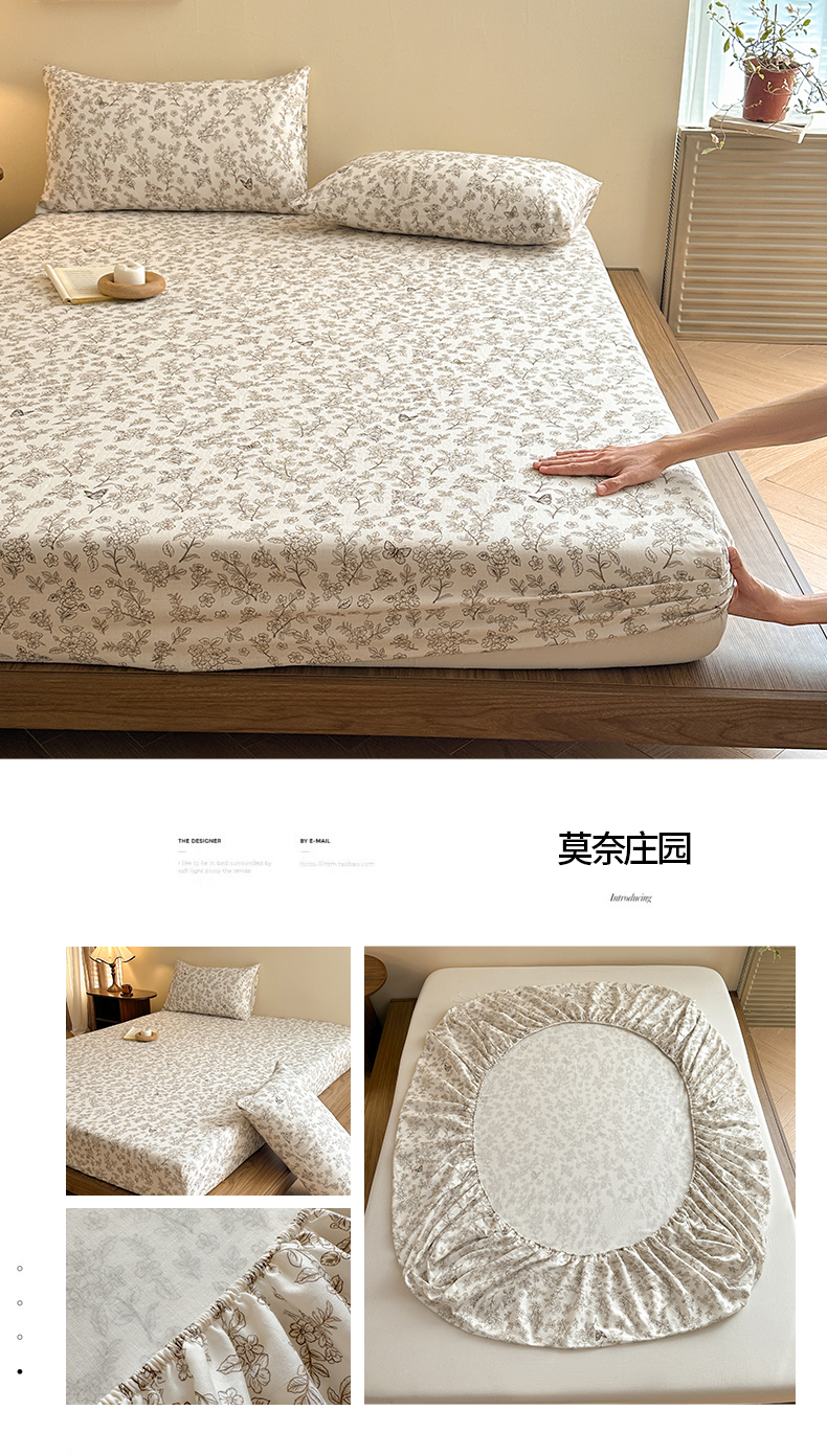 商品名称:寻米 2025新款A类全棉双层纱印花单床笠 莫奈庄园