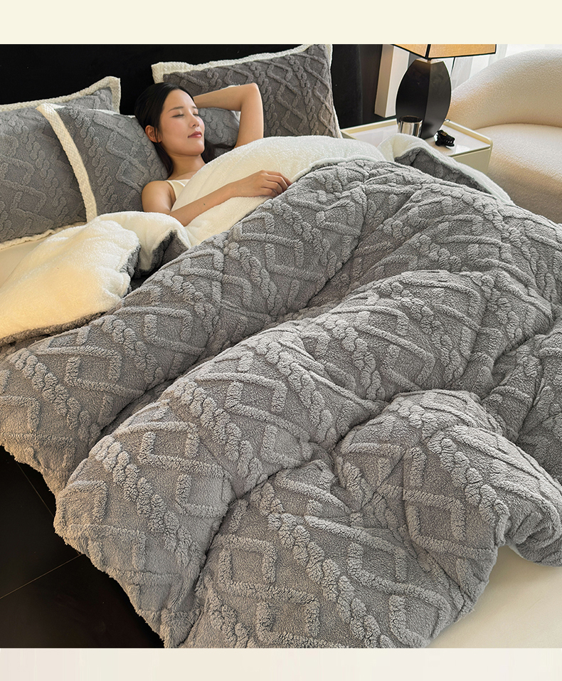 • 91家纺网 家纺一手货源 找家纺 买家秀 爆款不断货A类羊羔绒被子被芯牛奶绒被子被芯春秋被秋冬被塔芙绒被子被芯雪花绒被子北极绒冬被 AB版-灰蓝色