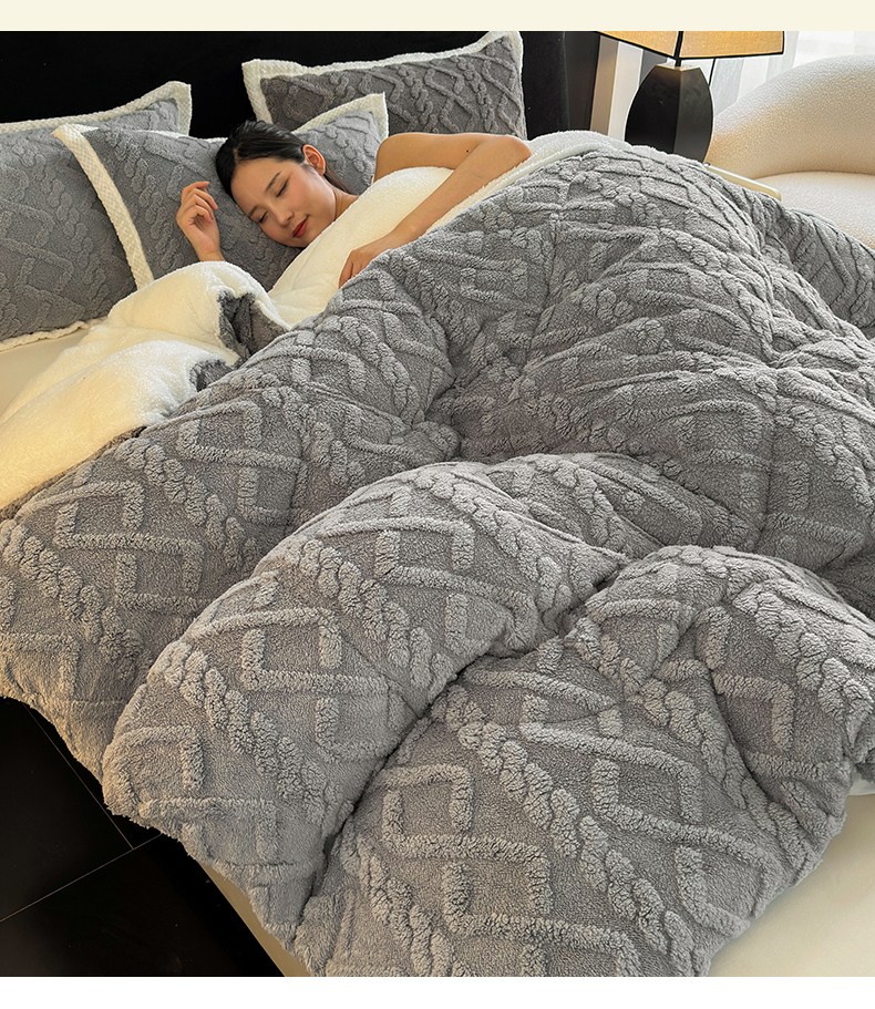 买家秀 爆款不断货A类羊羔绒被子被芯牛奶绒被子被芯春秋被秋冬被塔芙绒被子被芯雪花绒被子北极绒冬被 AB版-灰蓝色