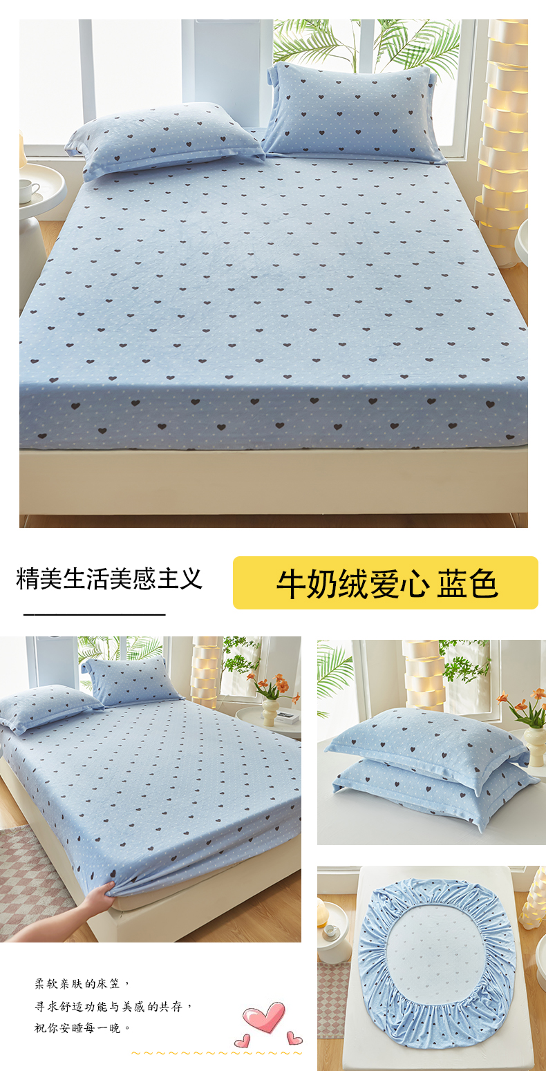 • 91家纺网 家纺一手货源 找家纺 买家秀 爆款不断货)A类母婴级纯色牛奶绒床笠珊瑚绒床笠雪花绒床笠牛奶绒床罩珊瑚绒床罩雪花绒床罩床垫套 爱心 蓝色