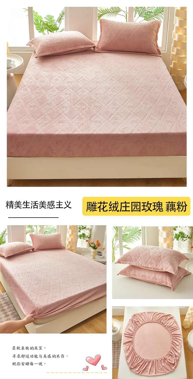 • 91家纺网 家纺一手货源 找家纺 买家秀 爆款不断货A类母婴级纯色雕花绒床笠牛奶绒床笠珊瑚绒床笠雪花绒床笠牛奶绒床罩珊瑚绒床罩床垫套 雕花庄园玫瑰 藕粉
