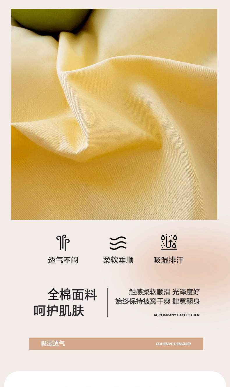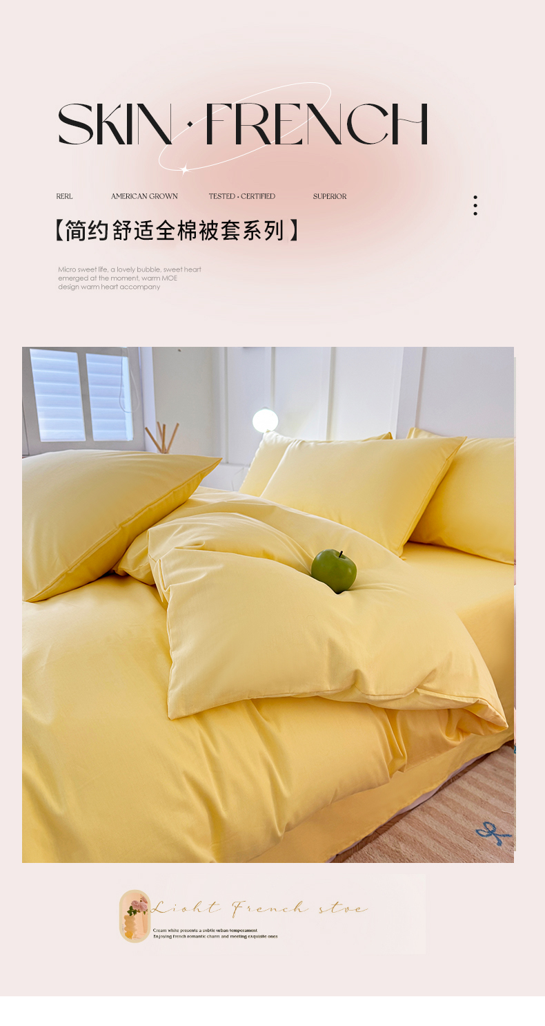 商品名称:佰亿莱 2025新款简约舒适全棉单品系列单被套 璀灿黄