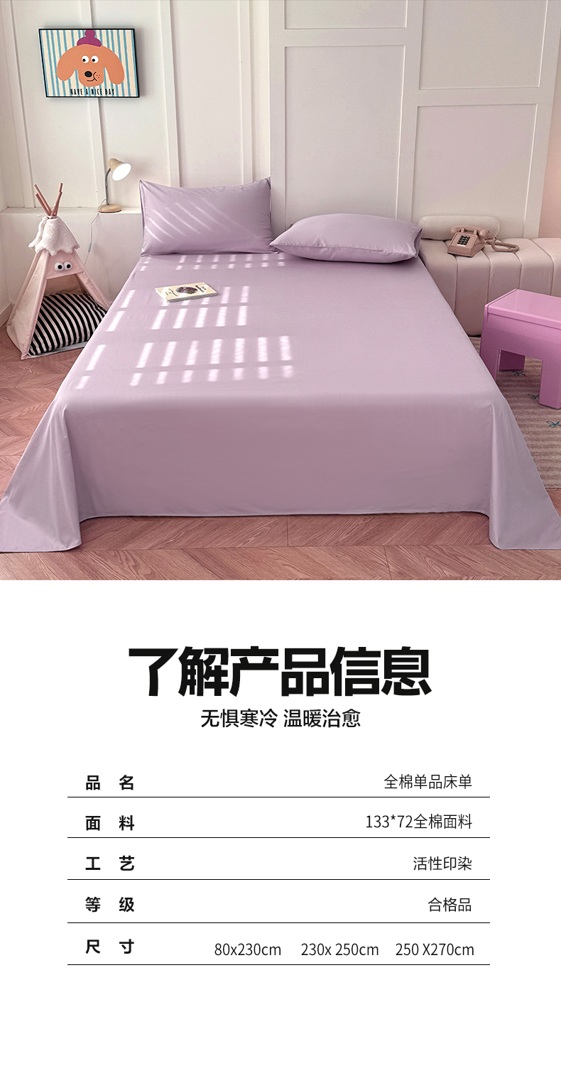 商品名称:佰亿莱 2025新款简约舒适全棉单品系列单床单 樱桃粉