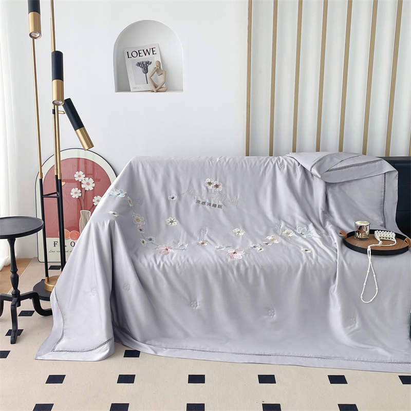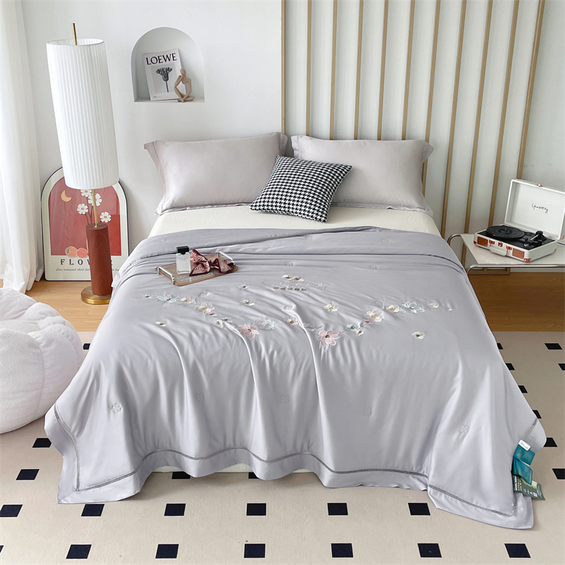 优姿家纺 2025新款60S天丝绣花镂空夏被3 灰色