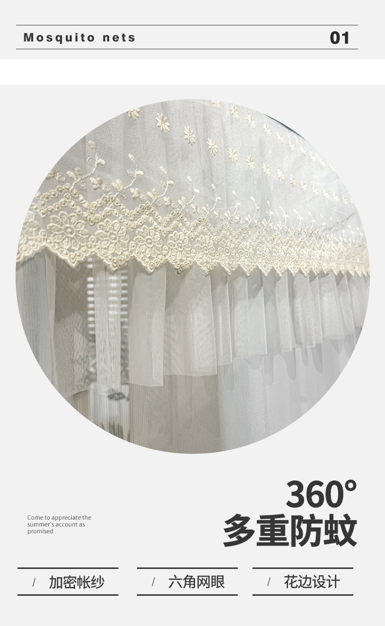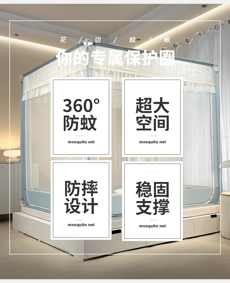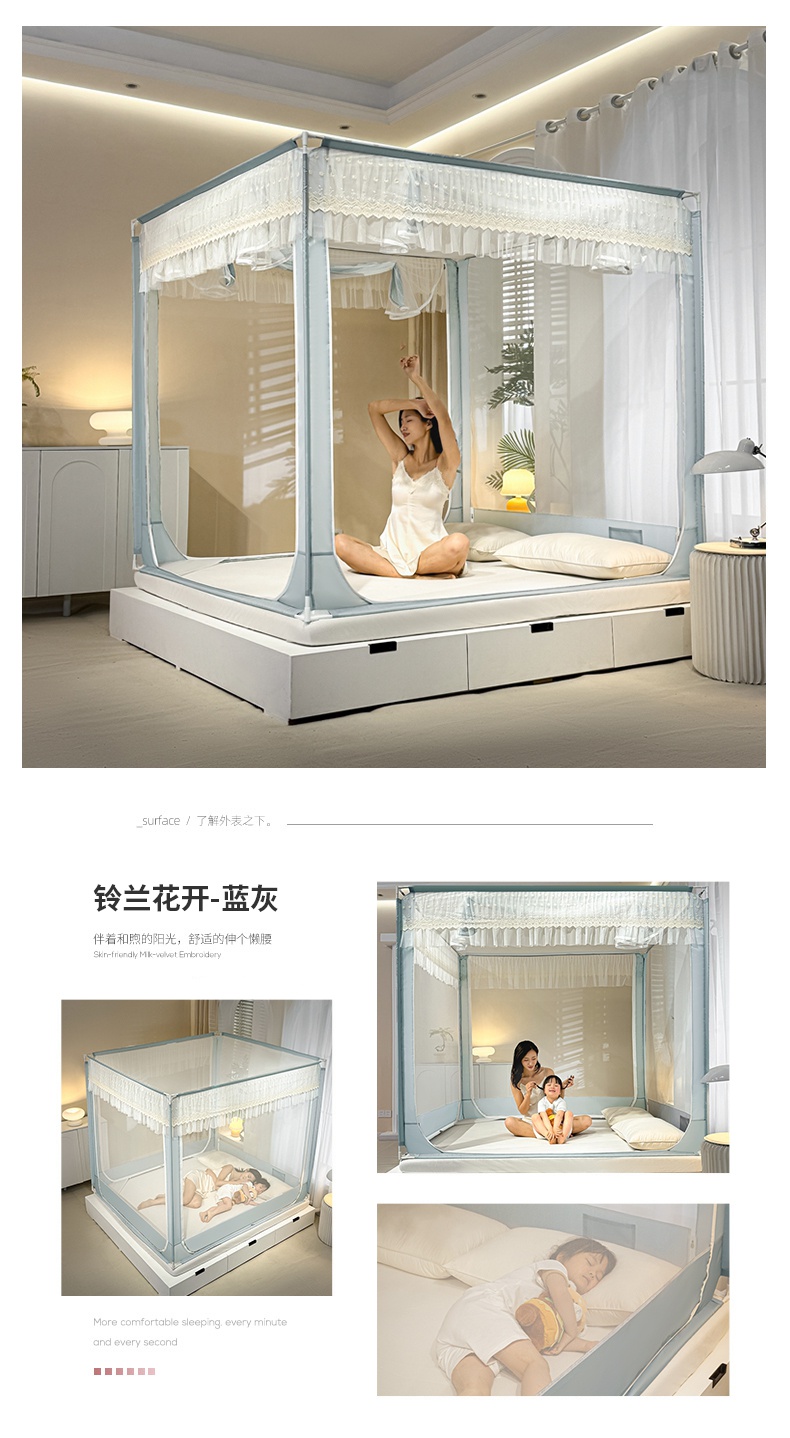 商品名称:青竹苑2025新款花边款床笠底防摔坐床蚊帐-铃兰花开 铃兰花开-蓝灰