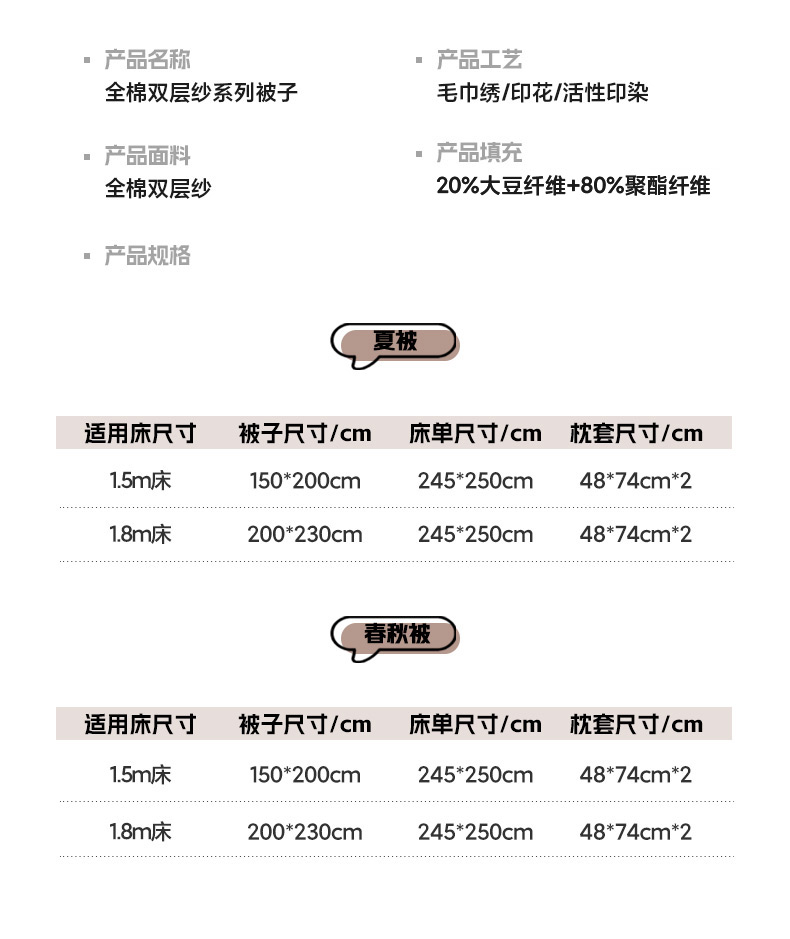 200*230cm春秋被 | ¥145.00 |