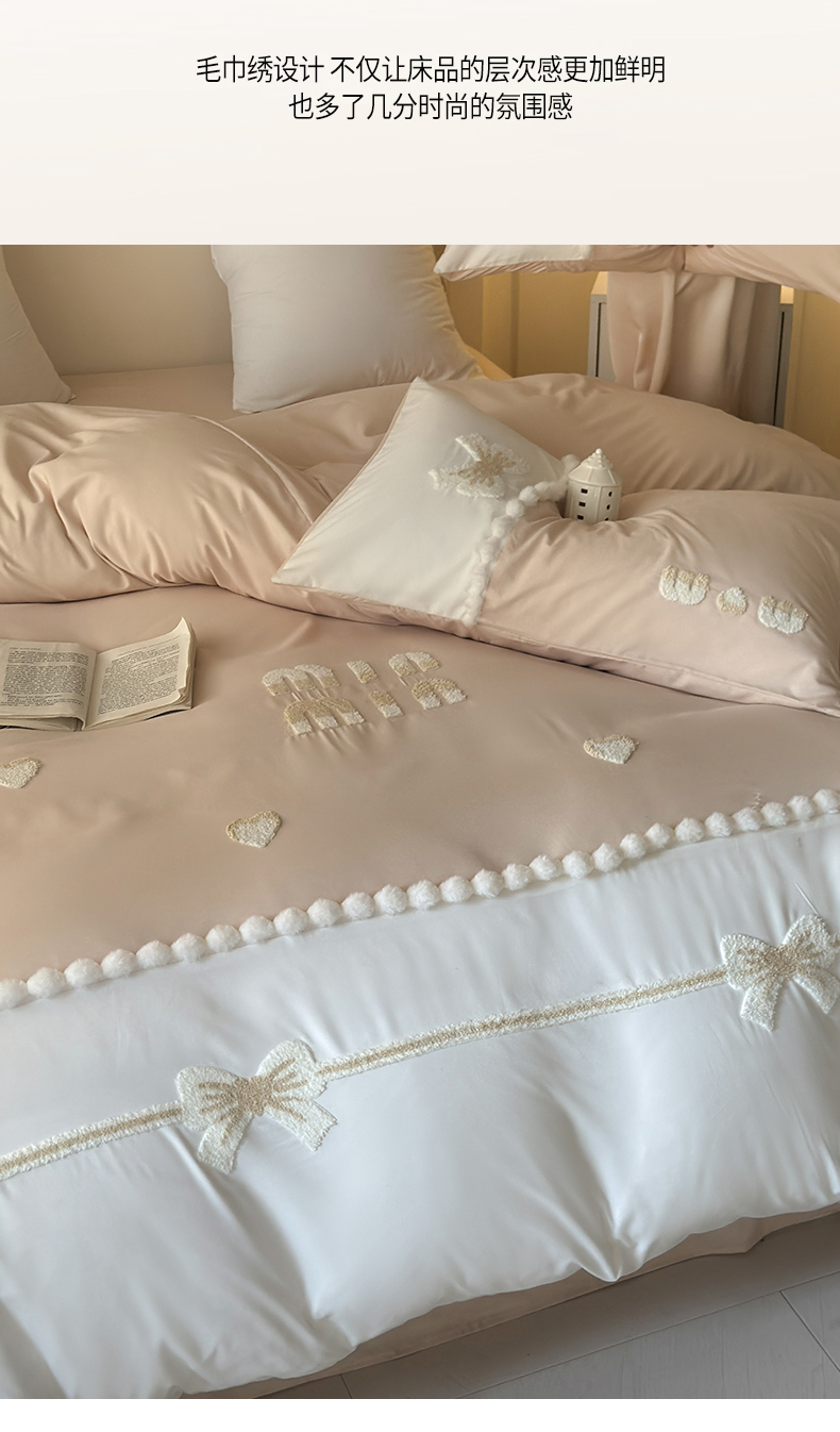 当前位置: 91家纺网 > 商品网购 > 床品套件 > 四件套 > 毛巾绣四件套 > 豪美鑫2025新款柔肤棉毛巾绣公主风爱恋四件套系列 爱恋-奶茶色