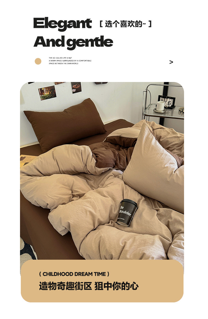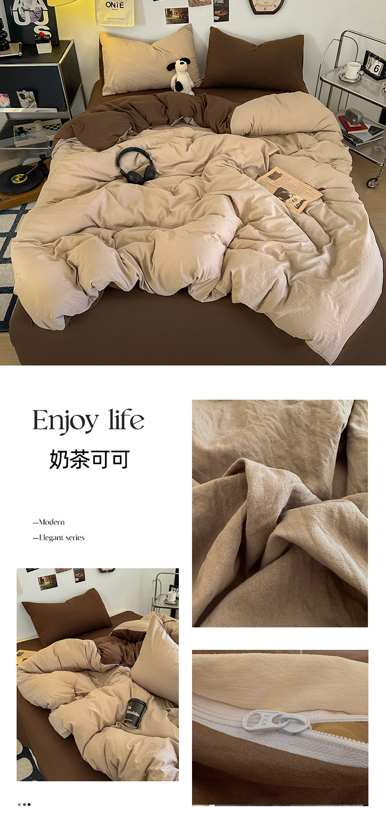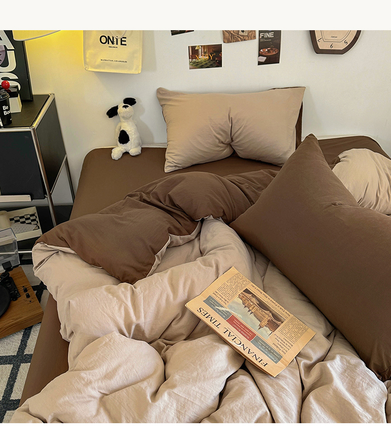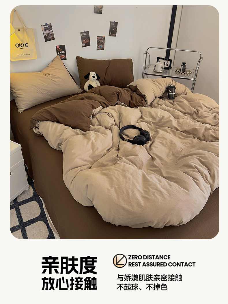 当前位置: 91家纺网 > 商品网购 > 床品套件 > 四件套 > 水洗棉四件套 > 耀达家居 2025新款纯色A类水洗棉双拼四件套 奶茶可可