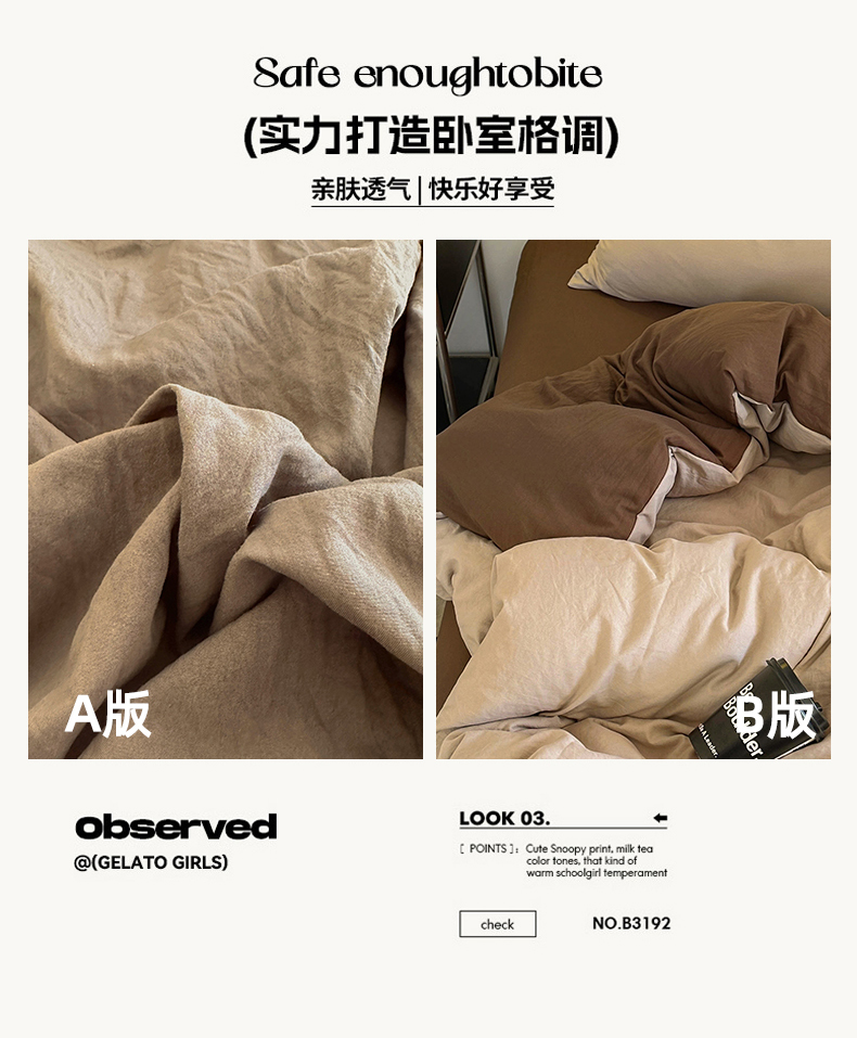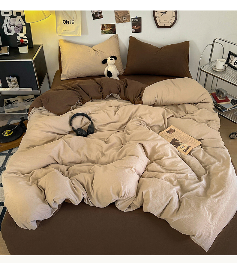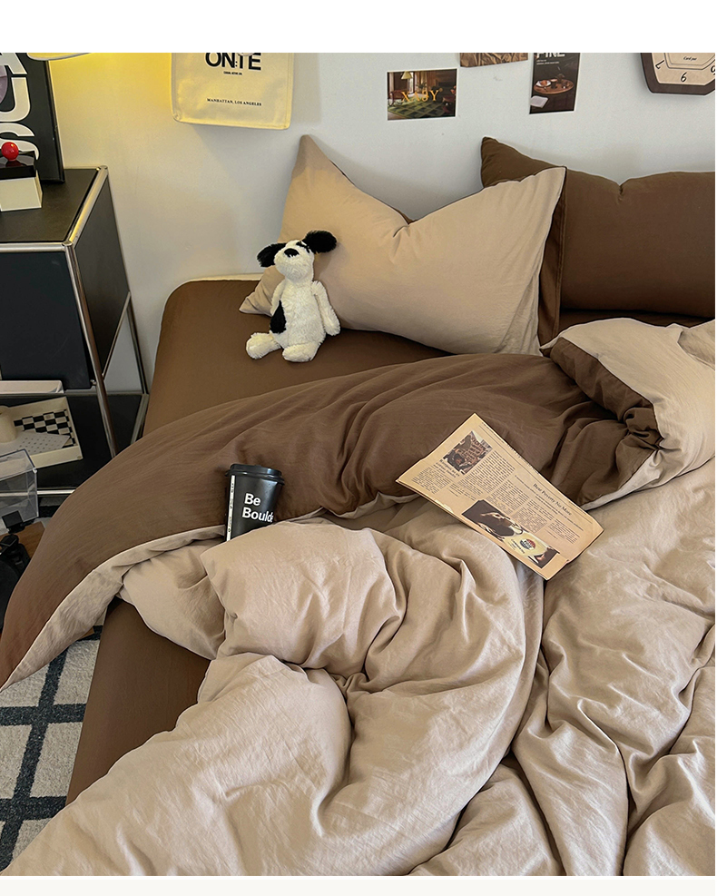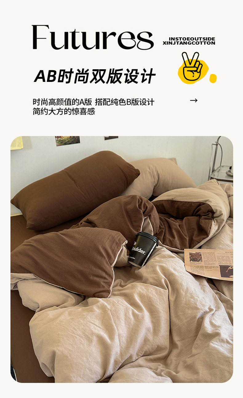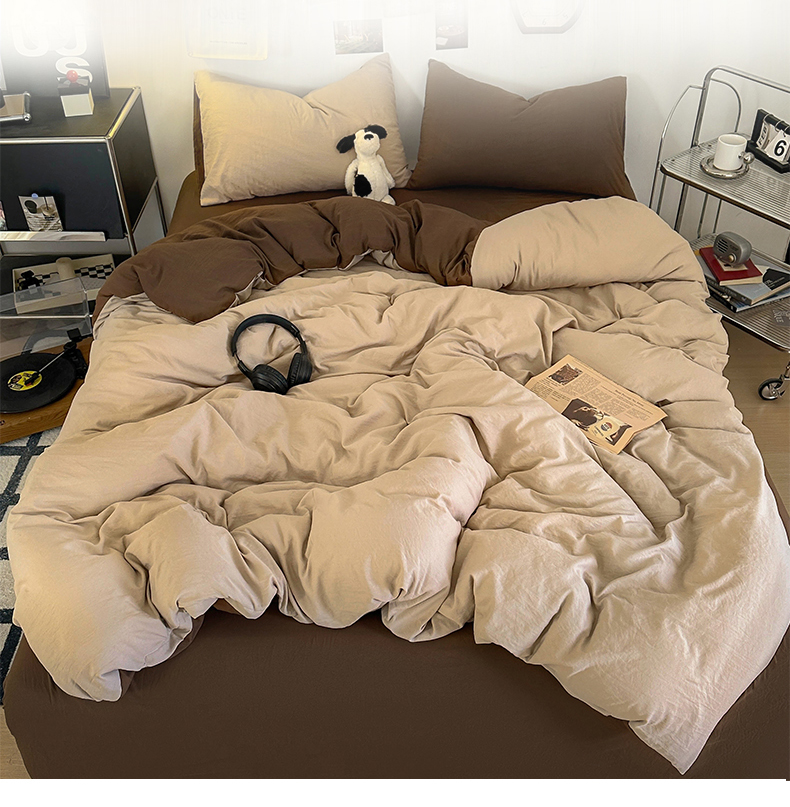 当前位置: 91家纺网 > 商品网购 > 床品套件 > 四件套 > 水洗棉四件套 > 耀达家居 2025新款纯色A类水洗棉双拼四件套 奶茶可可