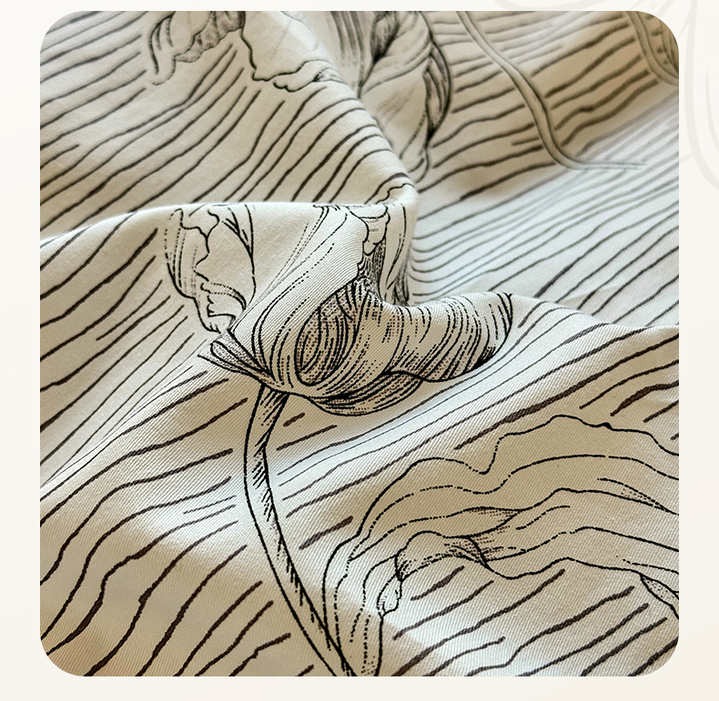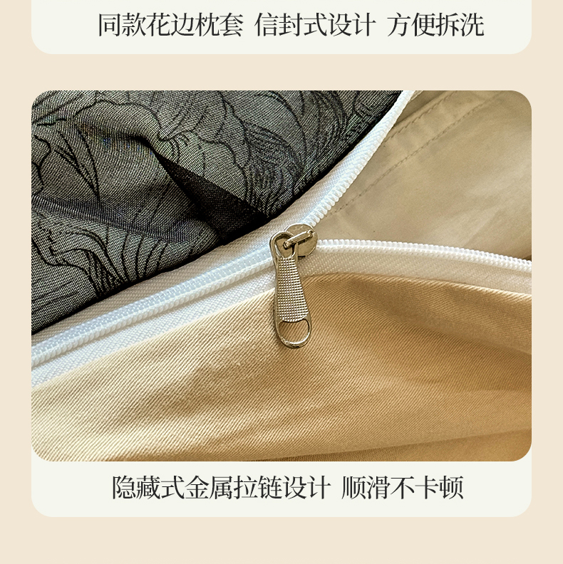 宅家居 2025新款爆款轻法式赫本风复古印花13372纯棉四件套韩式黑色花边40支全棉三件套 夏荷