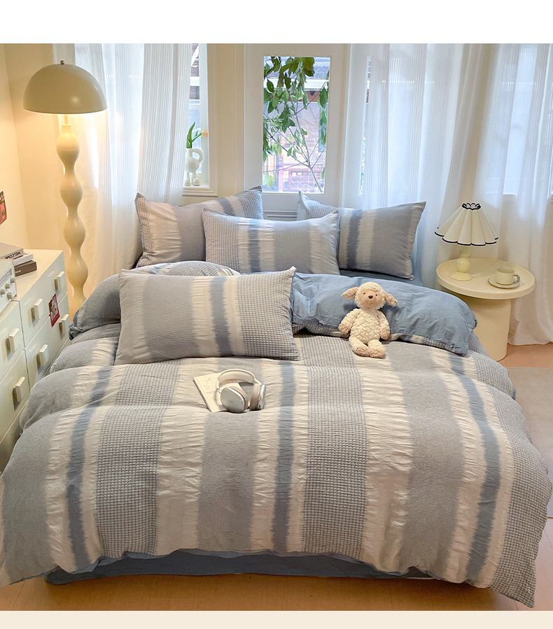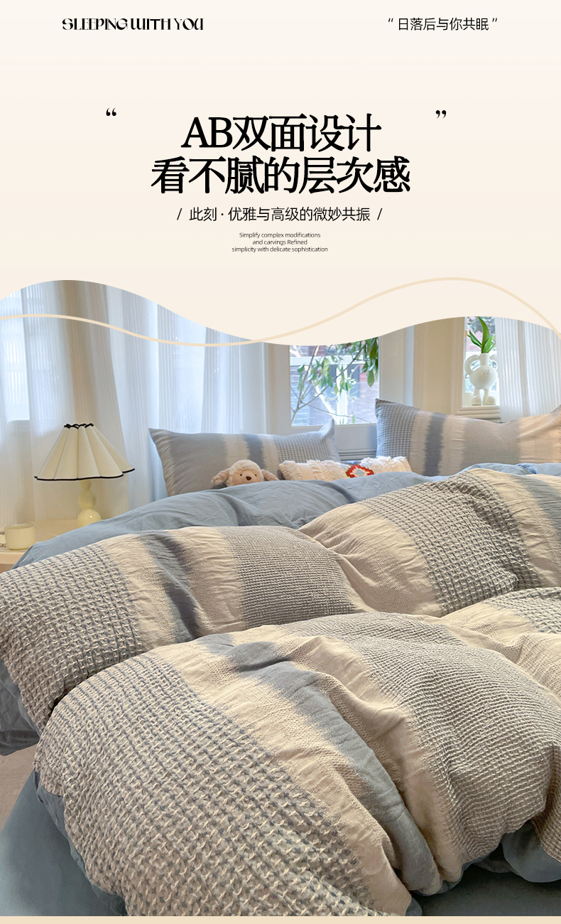 (总)莱茵家居 2025新款全棉纯棉皱皱纱条纹四件套-杼影,杼影-咖纸蓝,杼影-冷雾蓝,杼影-麦浪紫,杼影-绵云咖,杼影-奶泡粉,杼影-暖果黄,杼影-午茶绿,杼影-雨巷灰