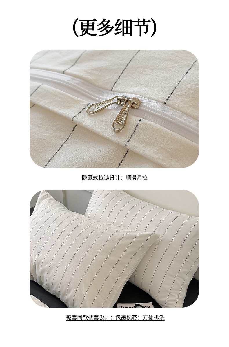 商品名称:莱茵家居 2025春夏新款A类色织混搭水洗棉四件套-素岛 素岛-寂黑