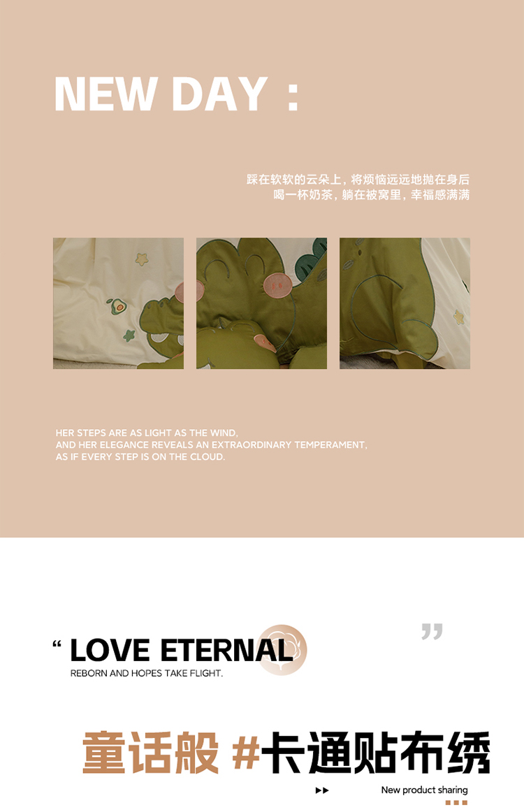 (总)新款ins风全棉A类40s水洗棉贴布绣花四件套儿童三件套上下铺床套件,长耳兔,开心芝士,宇航梦,彩虹鸭,小鳄莱莱