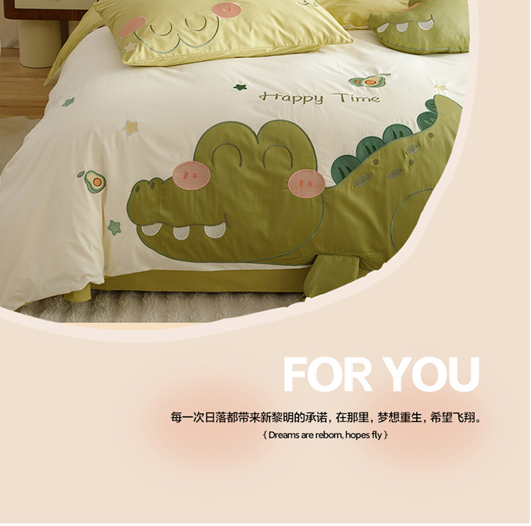 (总)新款ins风全棉A类水洗棉贴布绣花四件套儿童三件套上下铺床套件,彩虹鸭,开心芝士,小鳄莱莱,长耳兔,宇航梦