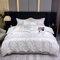 总艾米家居2025新款水洗真丝雪纺花边贴布绣四件套-达菲小熊,白色,薄荷绿,宾利蓝,淡粉,豆沙,鹅黄,灰色,天蓝,香槟,玉色