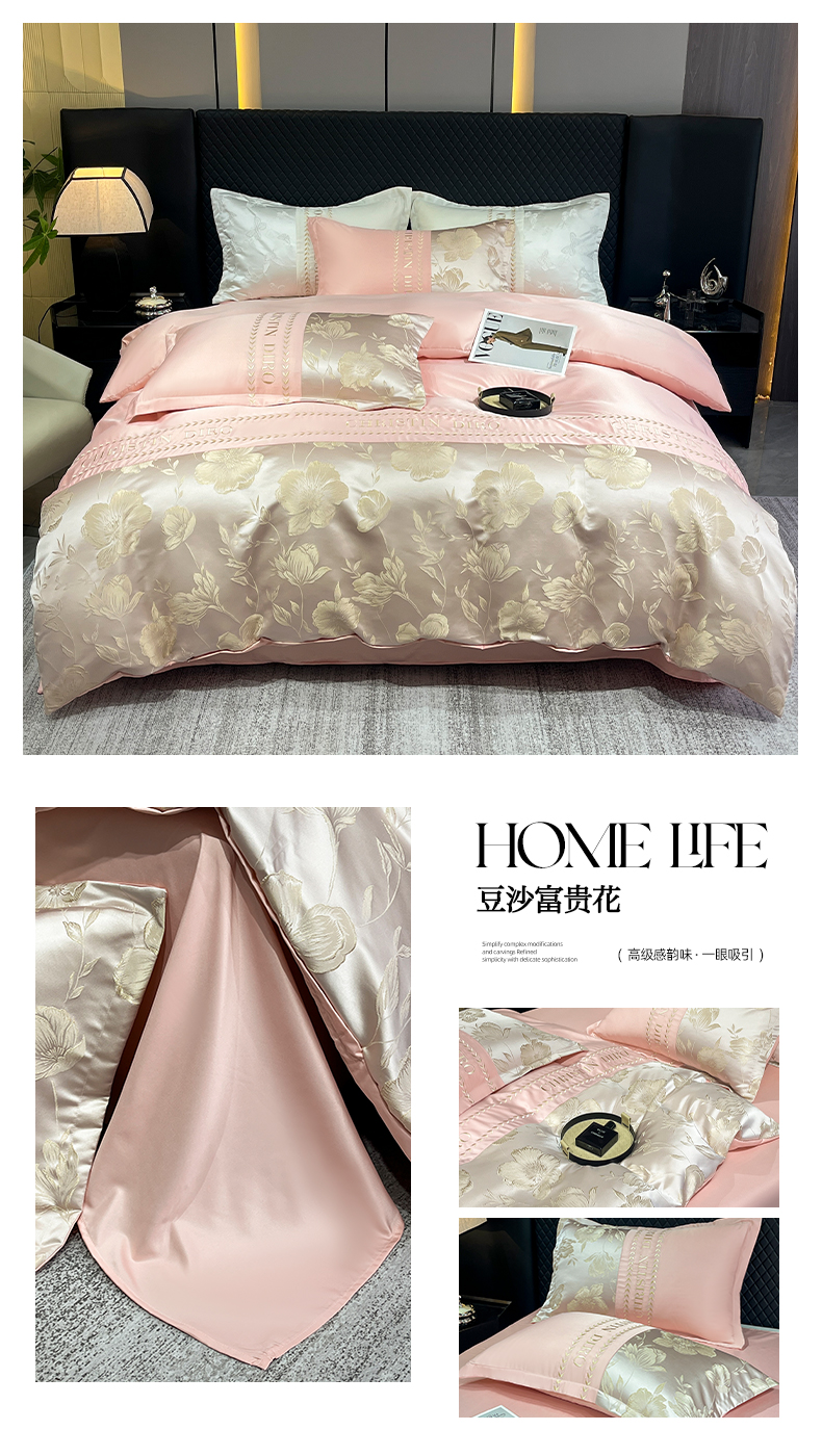 艾米家居 2025新款韩版双层花边轻奢浮雕系列水洗冰丝四件套 豆沙花边,豆沙花边