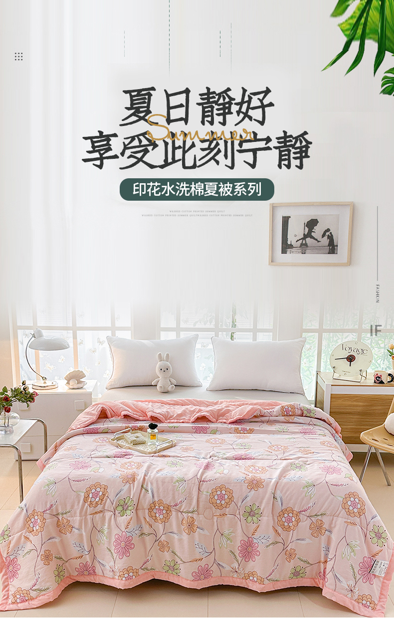 • 91家纺网 家纺一手货源 找家纺 好欣怡家纺 2026新款水洗棉夏被空调被被子被芯印花小清新夏凉被直播热款 水洗棉包边款-甜蜜家园