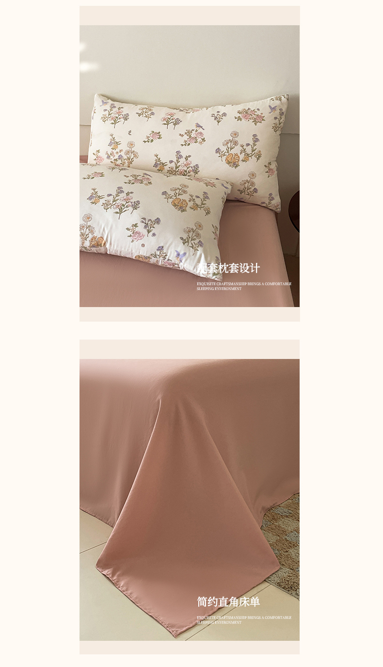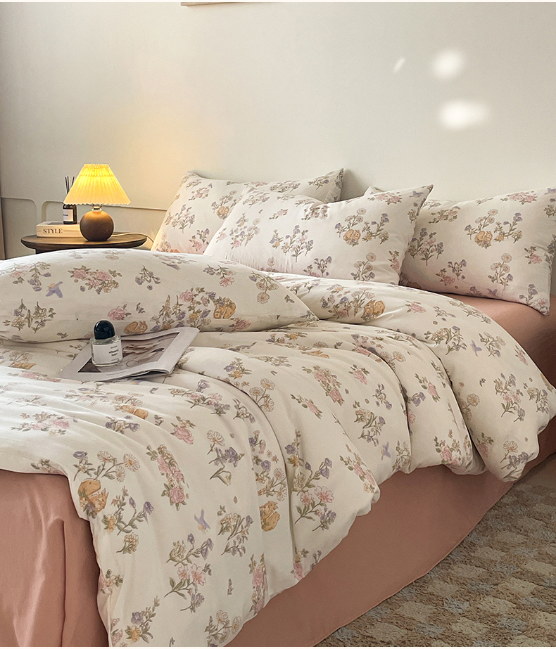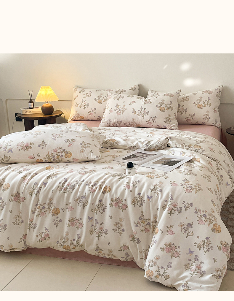 诺梵家纺 2025新款有氧双层纱印花四件套 清新田野