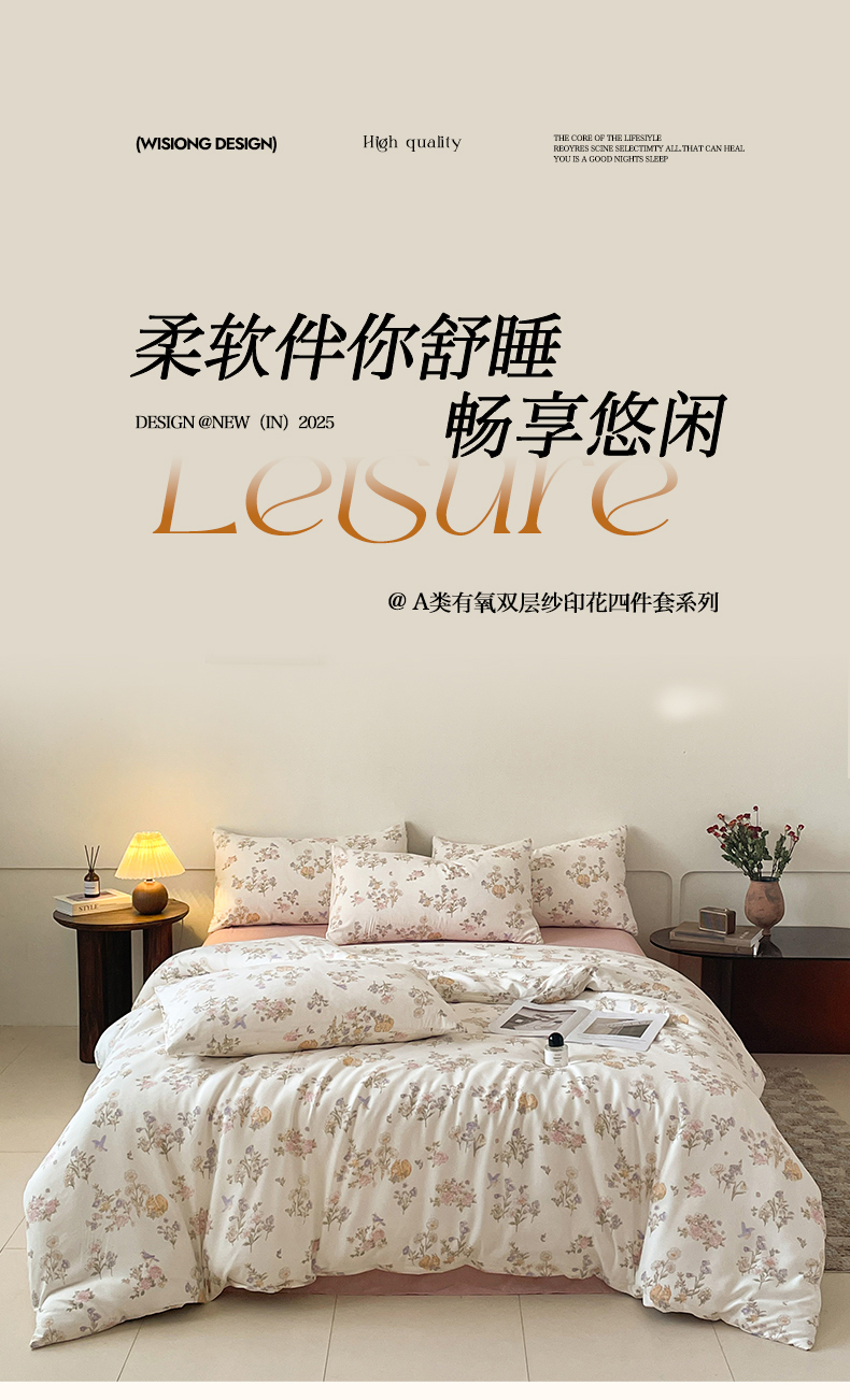 (总2)诺梵家纺 2025新款有氧双层纱印花四件套,安琪拉,半亩花田,贝利,沉香,春不晚,春序,丛林絮语,叮当熊,粉色蔷薇,花千朵-兰,花夕子,卢卡斯,洛娜,梅林春晓,慕斯,奶油甜心,妮卡,奇幻木马,蔷薇园,清新田野,情结-粉,情结-灰,香榭,小苍兰,小马宝丽,幸福里,尤朵拉,云锦香,花开半夏,香可可,格林童话,奶油小狗