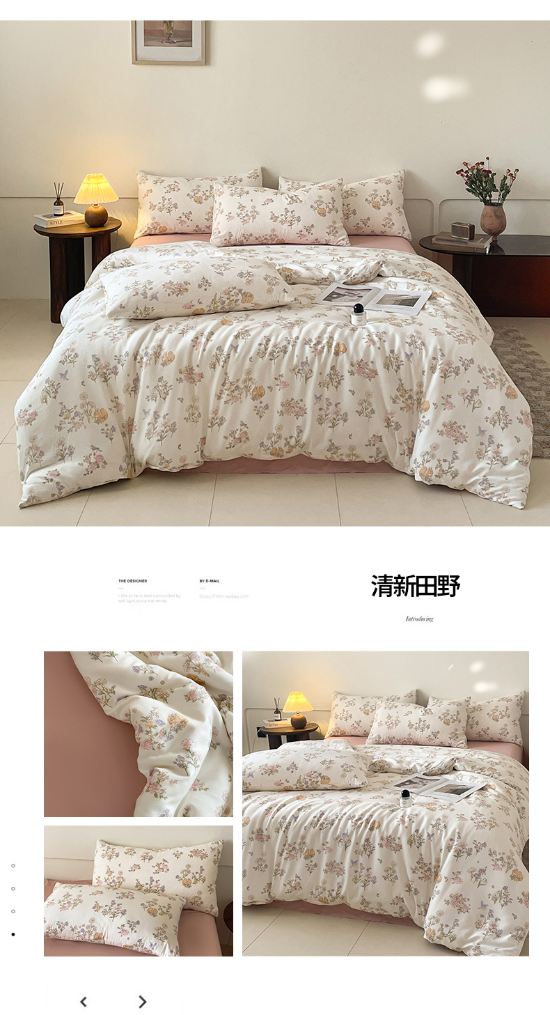 商品名称:诺梵家纺 2025新款有氧双层纱印花四件套 清新田野