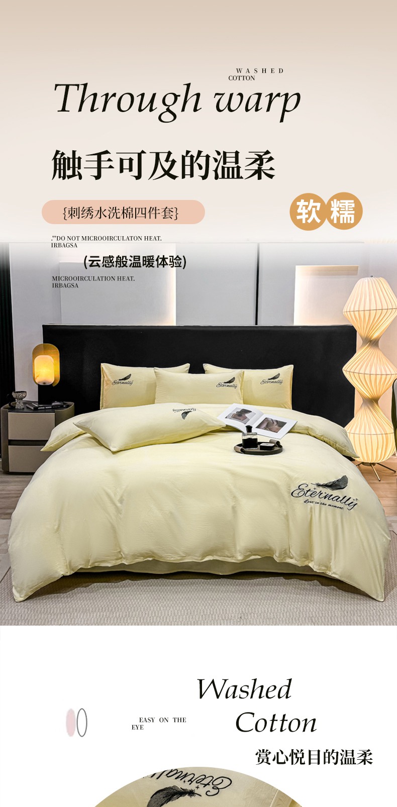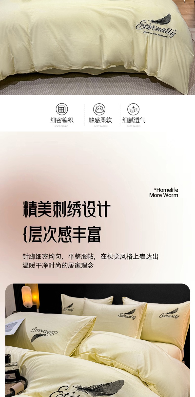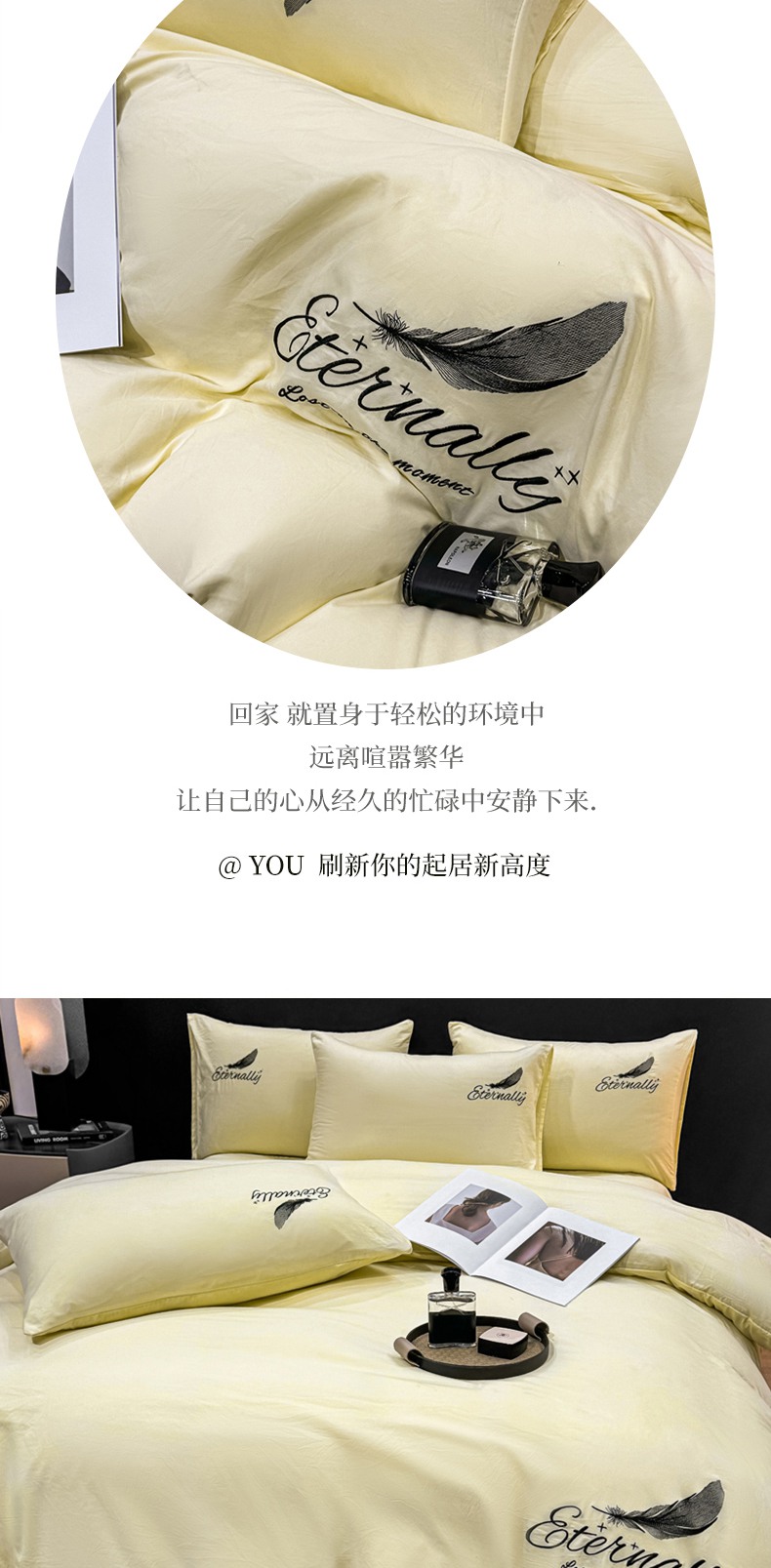 当前位置: 91家纺网 > 商品网购 > 床品套件 > 四件套 > 水洗棉四件套 > 麒东家纺 2025年新款刺绣水洗棉四件套羽毛系列 奶油