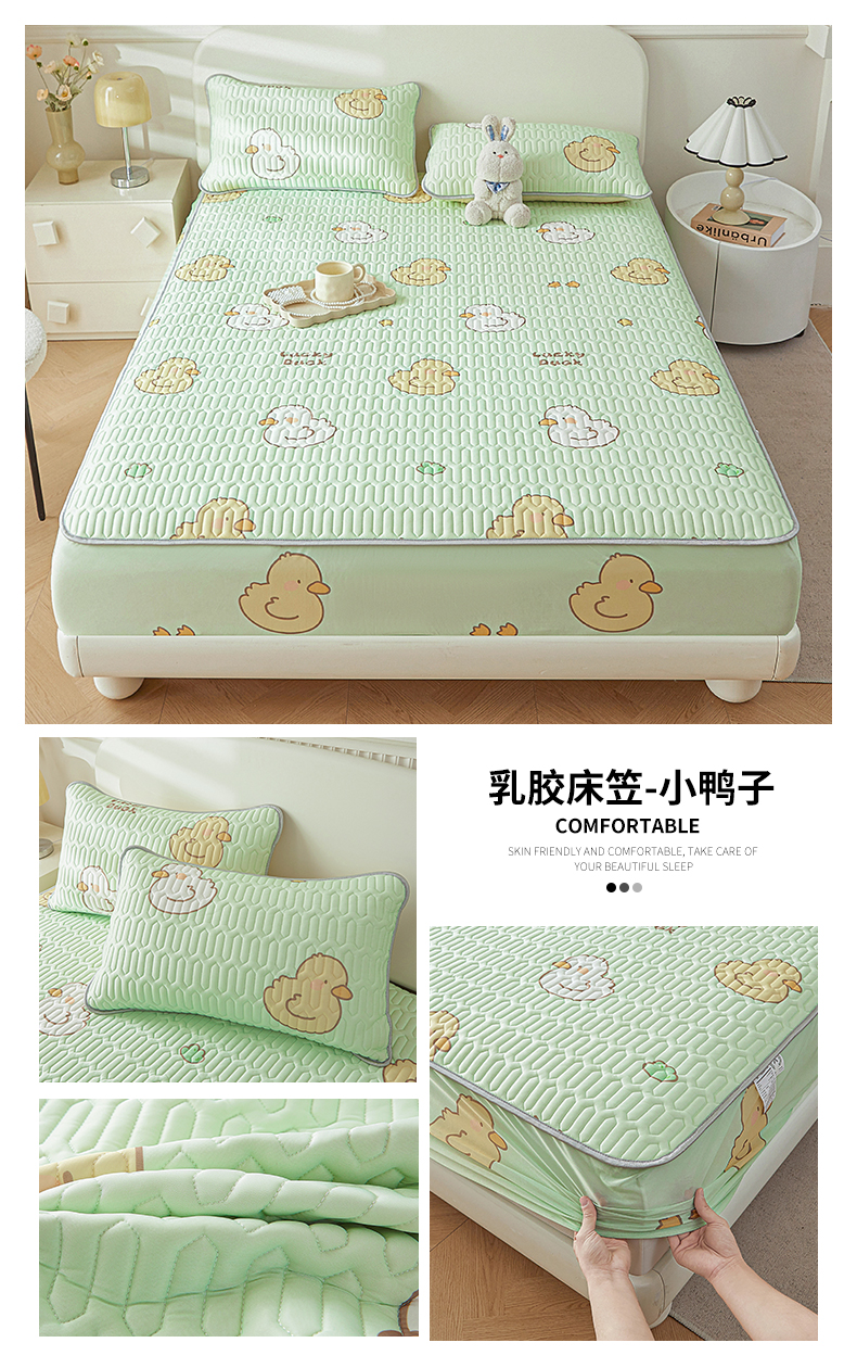 商品名称:雯豆2025夏季新品0.4乳胶凉席床笠款三件套凉感丝印花纯色床罩 乳胶床笠-小鸭子