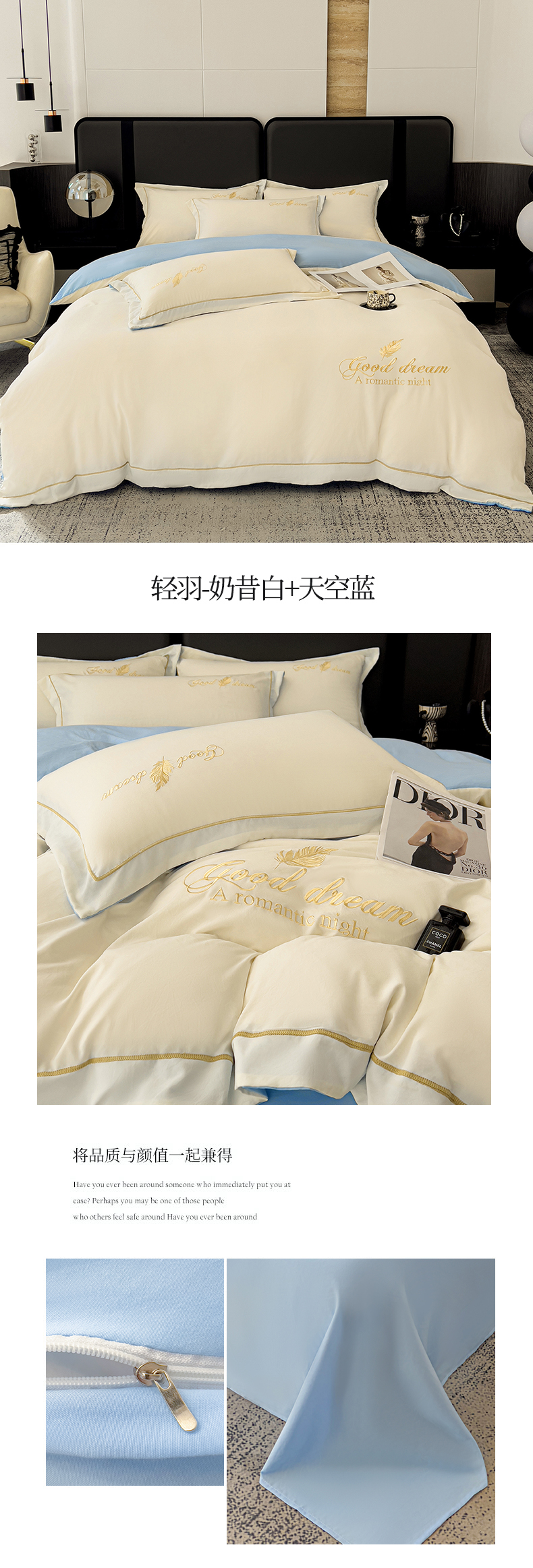 当前位置: 91家纺网 > 商品网购 > 床品套件 > 四件套 > 水洗棉四件套 > 灰鲸 2025新款轻奢轻羽刺绣水洗棉套件系列 轻羽-奶昔白+天空蓝