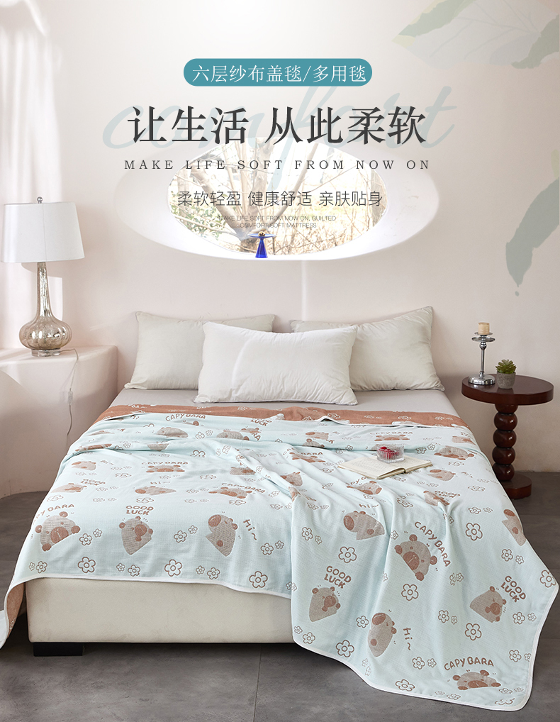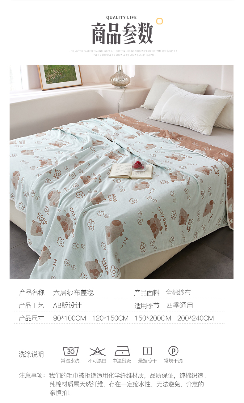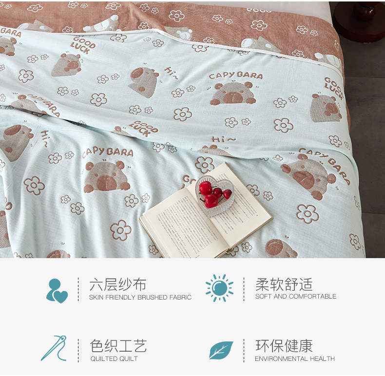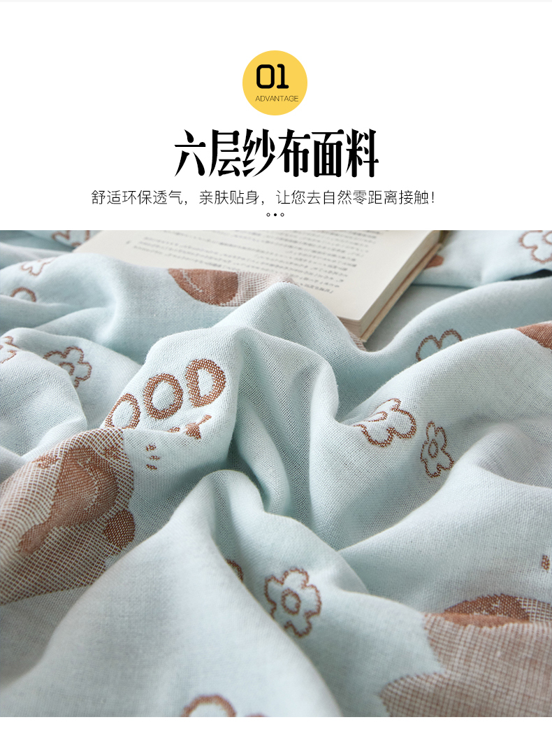 爱港家纺 2025新款全棉A类六层纱布毛巾被 夏被 咖熊记