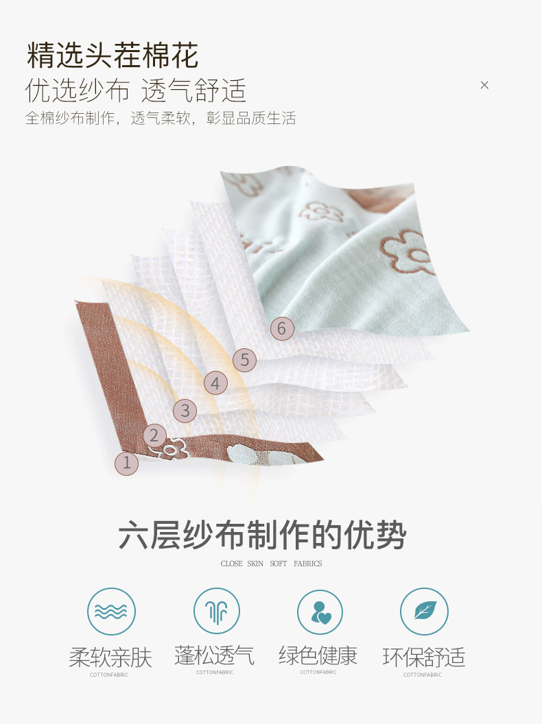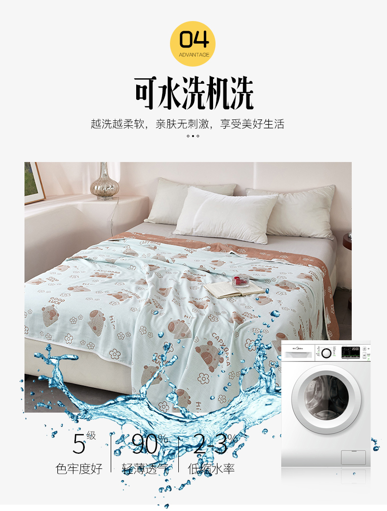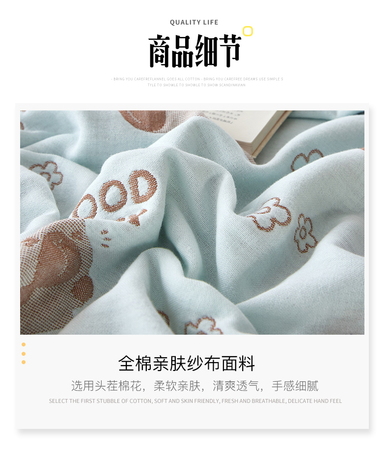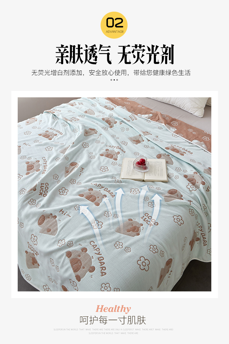 爱港家纺 2025新款全棉A类六层纱布毛巾被 夏被 咖熊记