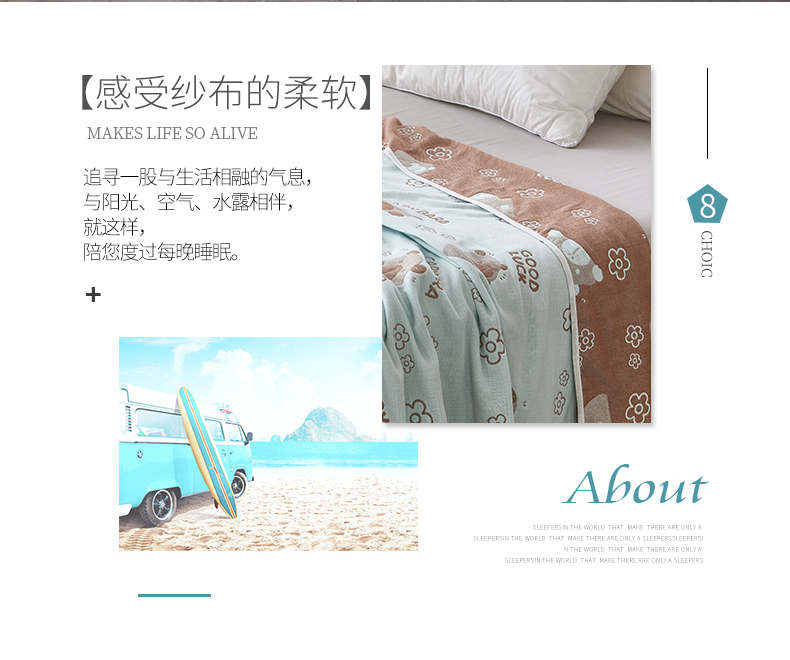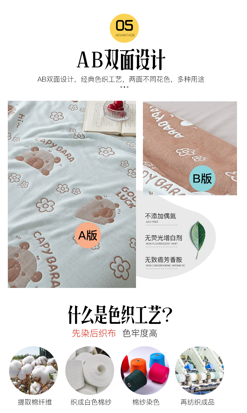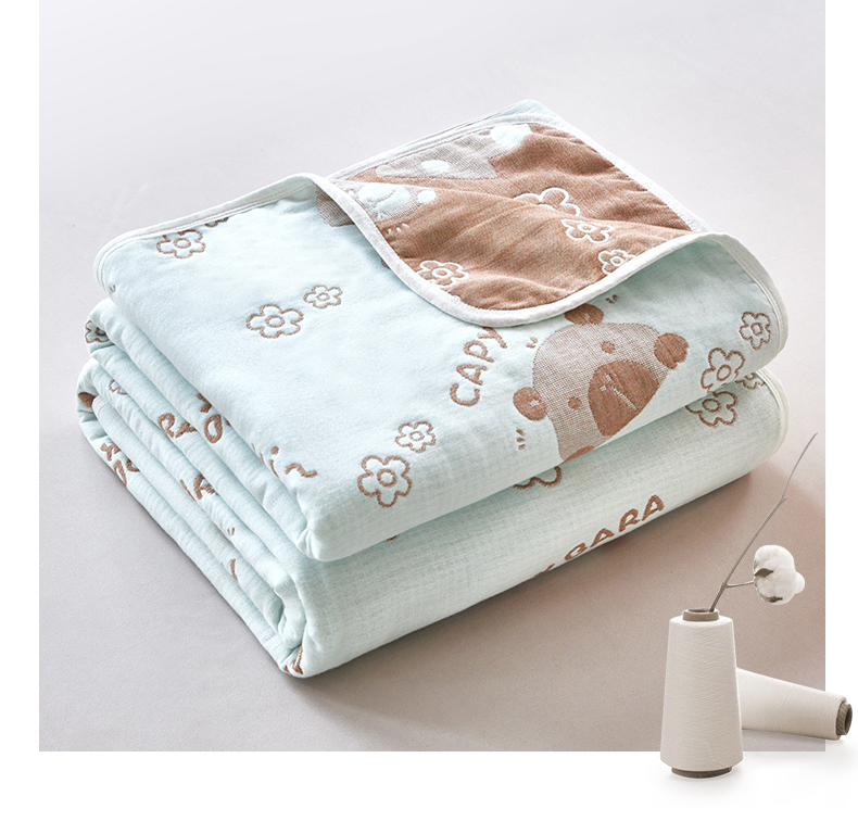 商品名称:爱港家纺 2025新款全棉A类六层纱布毛巾被 夏被 咖熊记